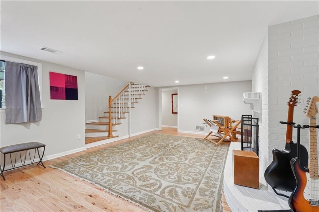 The terrace level, with its own entrance, offers flexible living—perfect for a guest suite, studio or income-producing rental. A cozy family room anchored by a second wood-burning fireplace adds warmth and function.