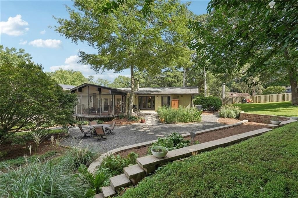 This home is a classic—anchored in mid-century modern design yet refreshed for today. Quietly nestled on a large, cul-de-sac lot, it embodies the hallmarks of the era: clean lines, open spaces and an organic connection to the outdoors. Expansive windows invite in natural light and frame serene views of the landscaped grounds, blurring the boundary between inside and out.