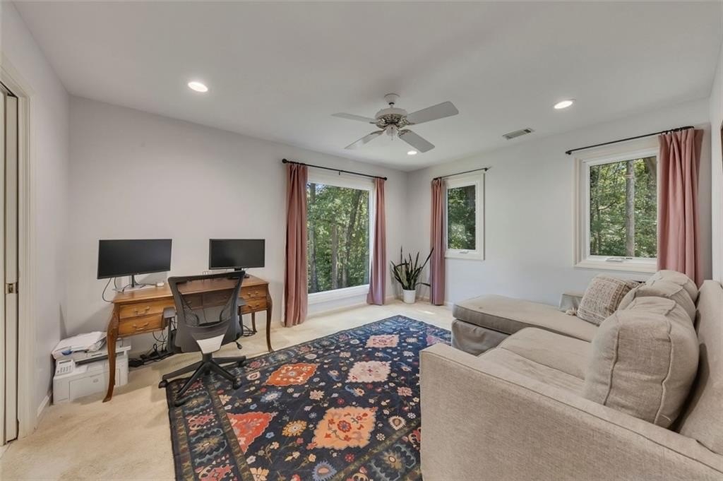 This stunning 3 Bedroom 2.5 Bathroom townhome in the prestigious River Farm community of Johns Creek is truly one of a kind! Offering the feel of a single-family home with the ease of exterior maintenance included, it's the perfect blend of luxury, comfort, and convenience. Step inside to a dramatic two-story foyer and an open, airy family room filled with natural light. The beautifully updated kitchen flows seamlessly into the dining area, and just beyond, a screened porch invites you to relax with morning coffee or unwind after a long day. Upstairs, you'll find two spacious bedrooms with a shared inter-leading bathroom, plus a gorgeous primary suite retreat complete with double vanities, a soaking tub, and separate shower. Every detail has been thoughtfully updated - including new lower kitchen cabinets, luxury vinyl plank flooring on the main level, a refreshed fireplace surround, newer windows through out most of the home, newer kitchen appliances, and new electrical surge protector- giving you complete peace of mind. Situated in an active community featuring 2 swimming pools, tennis and nature walk path, and minutes from top-rated schools, shopping, and dining, this home checks every box!! Truly a rare opportunity in the heart of Johns Creek! Only two rentals allowed in the community, one spot is open!