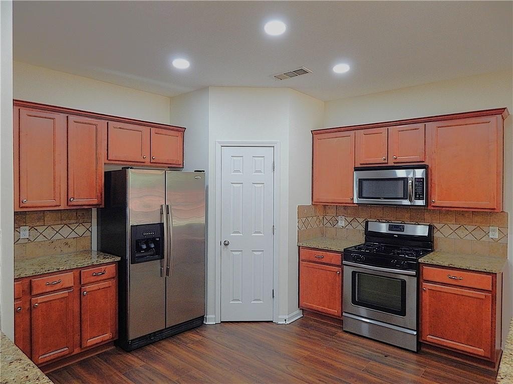 Welcome to Your Dream Home—Where Every Detail Is Designed for You! Perfect move-in condition with fresh paint inside and out and a rare two-story entry foyer that flows seamlessly into an expansive two-story family room in an open-concept layout. The entire first floor shines with brand-new luxury vinyl plank flooring, while the second floor boasts plush new carpet. You’ll love the large kitchen with granite countertops, stainless steel appliances, gas range, energy-efficient LED flush-mount floodlights, granite breakfast bar with pendant lighting - perfectly situated beside the dining area, with a wide, elegant staircase neatly framing the view toward the family room. Entertain effortlessly in the separate formal living/sitting room and formal dining room, marvel at the unique back staircase, and enjoy the painted concrete-coated garage floors. Upstairs, the generous master suite includes an big walk-in closet and double-vanity sinks, and secondary bedrooms are thoughtfully placed for privacy. The fully fenced, freshly re-stained backyard features a stamped-concrete patio ideal for gatherings. Your new neighborhood offers fabulous community amenities—sparkling swimming pool, tennis court, two pickleball courts, playground, and clubhouse—just steps from one of the subdivision’s two entrances. Don’t miss your chance to own this beautifully upgraded home with luxurious finishes, spacious living areas, and resort-style community perks—schedule your tour today!