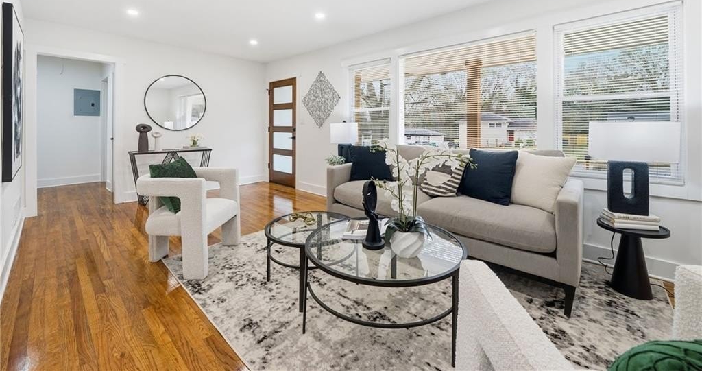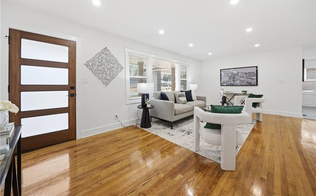 THIS FULLY REMODELED HOME CHECKS OFF ALL OF YOUR BOXES FOR A RIDICULOUSLY GREAT PRICE! DON'T WAIT TO COME CHECK OUT THIS BEAUTY! Welcome to a beautifully upgraded four sided brick home where quality, comfort, and style come together seamlessly. From the moment you arrive, the beautifully landscaped front yard and large front porch with cedar posts set the tone for what's inside. This home has been completely refreshed with fresh paint inside and out, new sheetrock, brand new doors and trims, recessed lighting, modern fixtures, and freshly stained wood flooring throughout. The brand new kitchen features new cabinets, stainless steel appliances, a stunning backsplash, and a modern L shaped quartz countertop, opening perfectly to a spacious dining room ideal for gatherings. A large laundry room adds everyday convenience. Both bathrooms have been fully renovated. The hallway bath offers quartz countertops, beautiful ceramic tile, a bathtub, and white ceramic flooring. The spacious master suite includes a luxurious stand up shower with a rain style shower head and a quartz vanity, creating a true retreat. Major updates include new plumbing, new air ducts, a brand new thermostat, fairly new A/C, water heater, and furnace, along with a roof in great condition, new windows, and new gutters for peace of mind. Outside, enjoy a huge fully fenced backyard, a large patio perfect for barbecues, a massive carport, and a spacious front yard. Located in a quiet, desirable area with 0.27 acres, this home is minutes from Highway 20 and I-285 and close to all your favorite restaurants and stores, offering the perfect balance of privacy and accessibility.