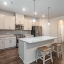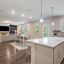 The chef’s kitchen is the heart of the home, showcasing white cabinetry, granite countertops, and a clear view into the warm and spacious family room—perfect for both everyday living and entertaining.