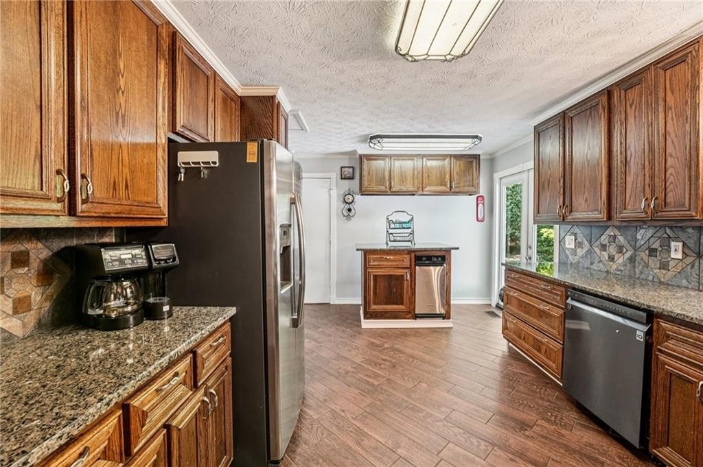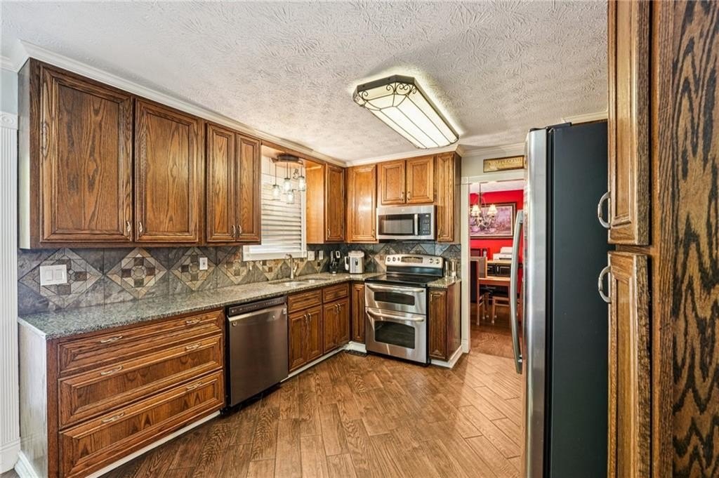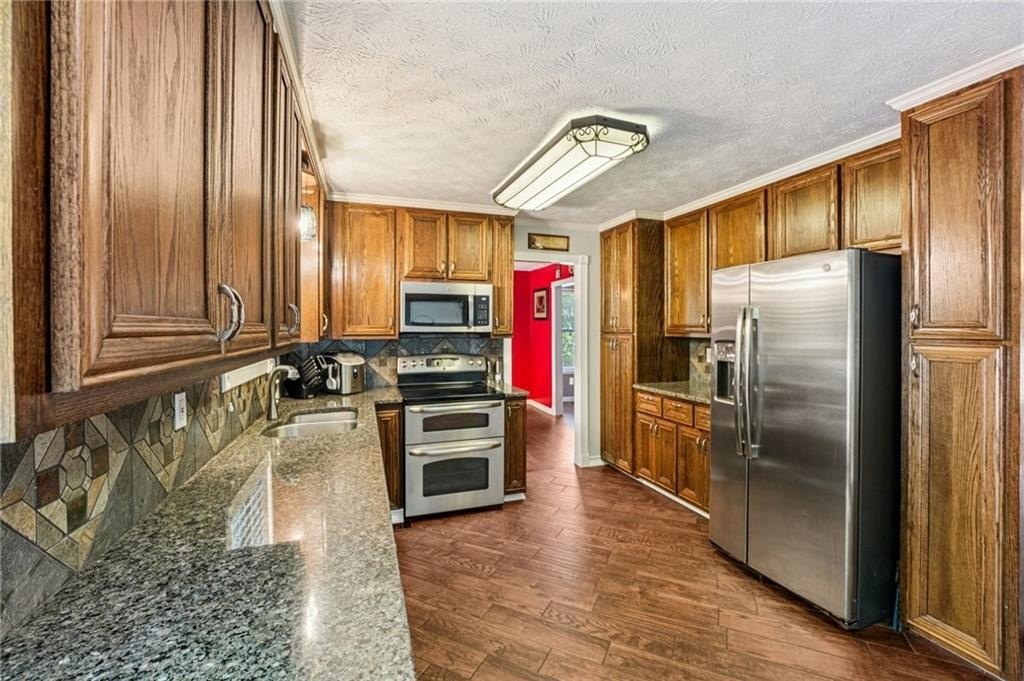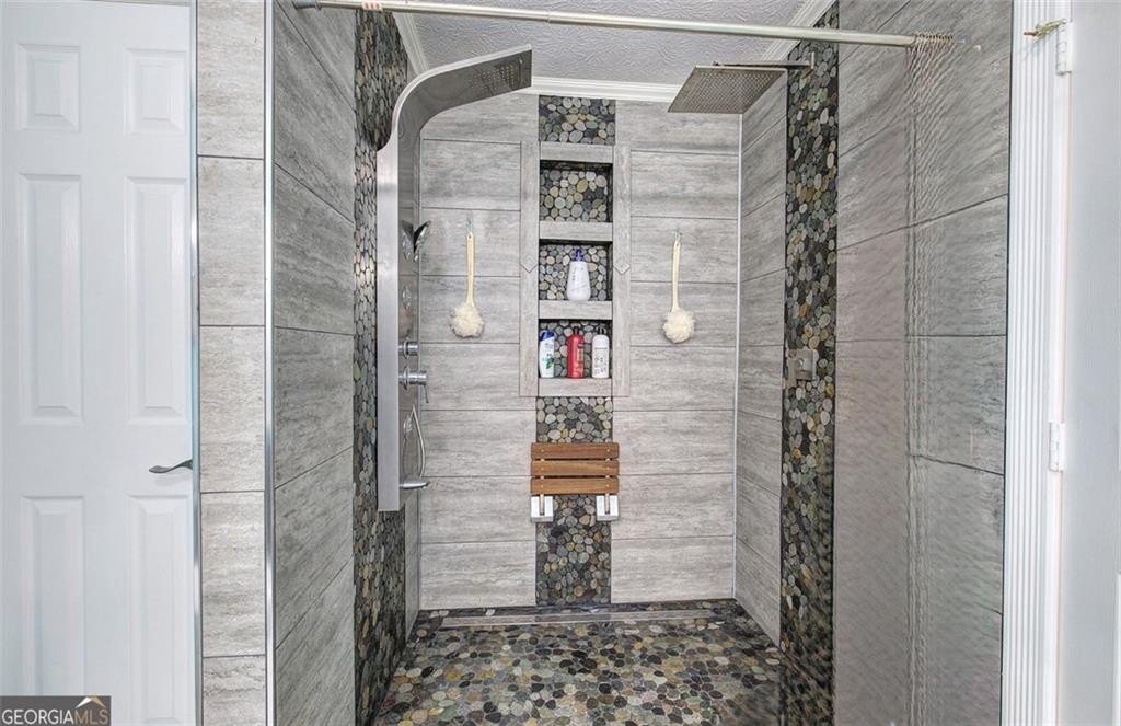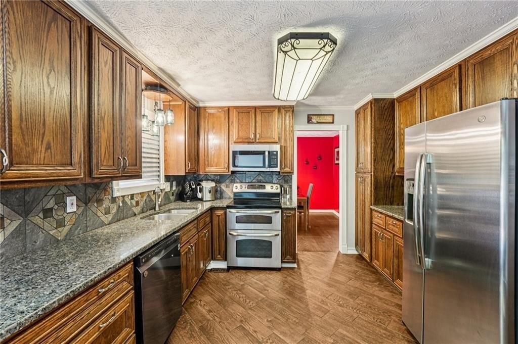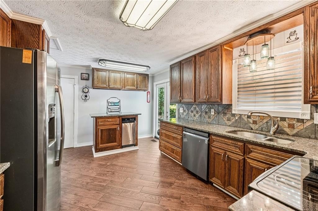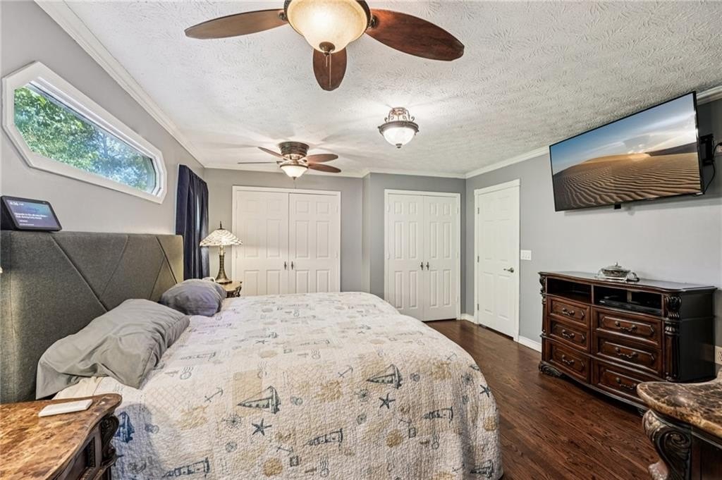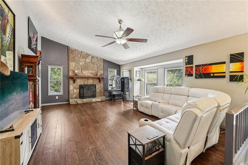 Welcome to this unique and beautifully maintained cul-de-sac home located on .45 acre in the sought-after Bramblewood Estates community. Offering 5 spacious bedrooms and 3 full bathrooms, this beautiful home provides an ideal layout for comfortable family living and multi-generational needs. New roof! New gutters and gutter guards. New back decking boards and fresh paint. New paint throughout interior and on front porch. Home has been wired for a whole house Generax generator. New breaker box and rewired with whole house surge protection. New tankless water heater installed in 2024. HVAC is a high efficiency 4 ton unit installed in 2013. Newer hardwood flooring, walk-in closets, crown molding, and ceramic tile add value throughout the home. Keyless door code entry system for front door and garage. The main level features a bright and airy living room with lodge-like vaulted ceilings, a cozy stacked stone fireplace, a formal dining room, and a completely renovated kitchen- including fresh paint, new flooring, counter tops, custom oak cabinetry, new stainless-steel appliances, double oven, and moveable island. Plenty of windows fill the home with warm natural light. Three bedrooms on the main level. The large primary bedroom features his/hers closets and large completely updated bathroom with double vanity and a custom spa-like double shower with 10 shower heads including a waterfall and rainforest effect. The other 2 main level bedrooms are generous is size, offering a serene retreat. The lower-level highlights 2 additional bedrooms, a full bath, spacious laundry room with tons of storage, and dining nook-perfect for an in-law suite or extended guest accommodations. The rebuilt back deck has been freshly painted. The backyard is truly a retreat! It’s completely fenced with a finished workshop/office building complete with separate HVAC and heating unit. Backyard has an oversized gate to allow parking of a large vehicle or RV. The oversized garage allows for 2 cars, a large workshop area and plenty of storage. Investor friendly in highly desired Mission Road Elementary and Woodland School District. Nestled in a quiet cul-de-sac, this home offers both privacy and charm. The HOA is optional, with low annual dues of $350, giving you access to the pool and voting rights. Ring cameras and security lighting stays with home. 30 amp RV power hook-up installed. Sellers have a Termite Bond on the home good for 8 years. Close to shopping and schools. Don’t miss out on this incredible opportunity in one of Cartersville’s most desirable locations! Schedule your showing today!