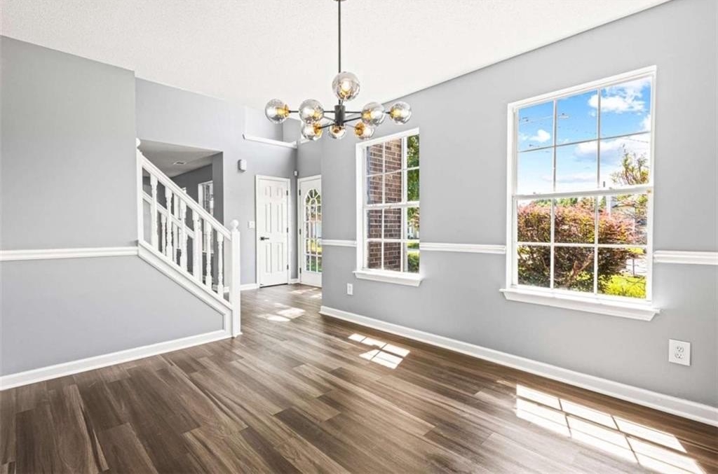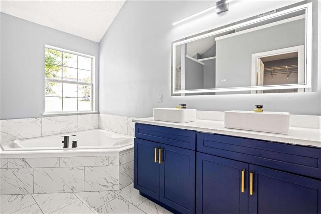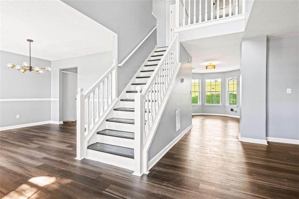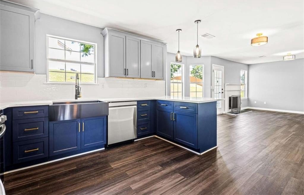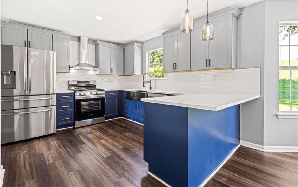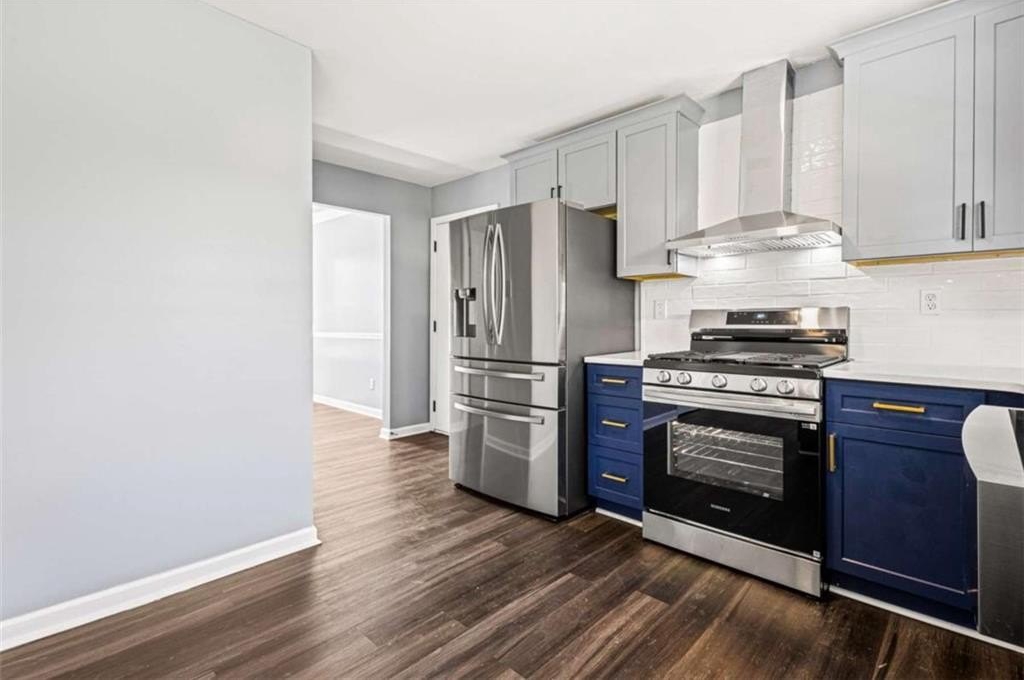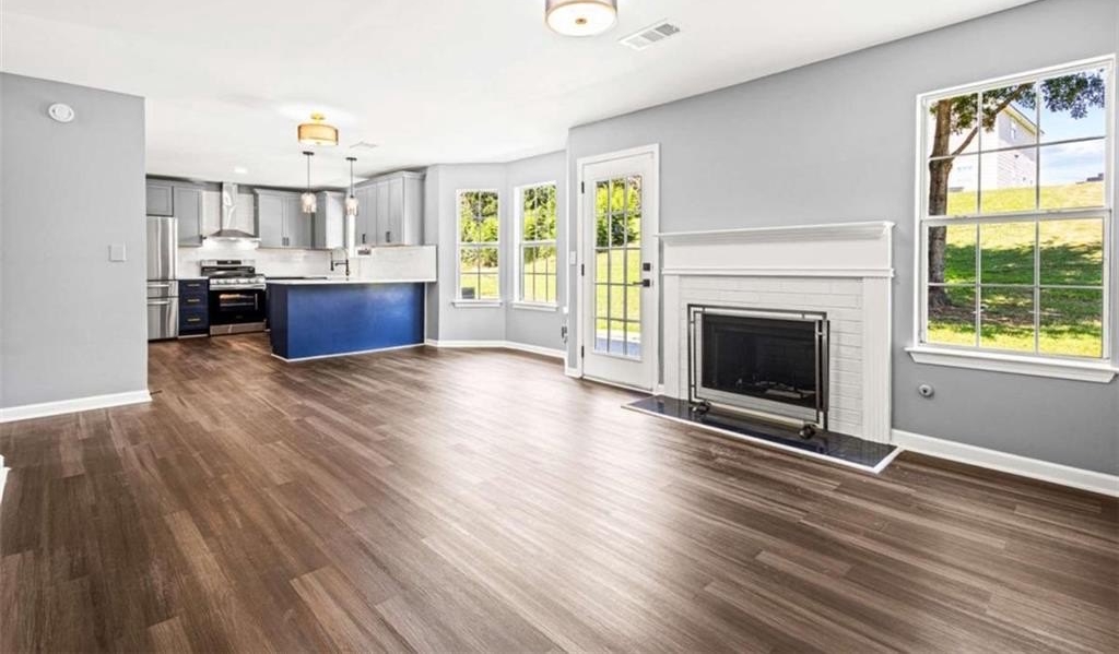 Welcome to 4664 Seagull Cove, a beautifully renovated two-story, 4 bedroom, 2.5 bathroom home offering over 2,100 sq. ft. of modern living space in the desirable Hairston Forest subdivision located in Decatur. Listed at $389,900, this home has been thoughtfully updated with designer finishes, smart home features, and stylish upgrades throughout. Enter the foyer, where a dramatic contemporary chandelier with floating LED rings makes a striking first impression. The dining room is anchored by a bold modern chandelier with smoked glass globe shades, creating the perfect atmosphere for entertaining. The renovated kitchen is a showpiece, featuring a Samsung French door Smart refrigerator, Samsung stainless steel gas range with griddle, a stainless steel vent hood, and a farmhouse apron-front sink with a black-and-gold commercial pull-down faucet. Custom two-tone cabinetry (navy lowers with brass hardware and soft gray uppers) is paired with quartz countertops and a subway tile backsplash, while smoked glass pendant lights add the finishing touch. The family room centers around a classic white fireplace with updated surround and hearth, complemented by modern semi-flush ceiling lights that bring warmth and style. Upstairs, the primary suite is a true retreat, featuring a sleek three-blade ceiling fan with remote control, a spa-like bath with dual vessel sinks, black-and-gold waterfall faucets, a deep soaking tub, and a luxurious walk-in shower with marble-style tile, rainfall showerhead, and penny tile flooring. The suite is finished with a lighted LED vanity mirror for a modern touch. Additional bathrooms feature designer vanities with quartz tops, navy cabinetry, and waterfall faucets, continuing the elegant design theme throughout. Smart home features include an Ecobee smart thermostat and a Vivint home security system, giving you energy efficiency, comfort, and peace of mind. Outside, the home sits on a quiet cul-de-sac street, close to shopping, schools, and major highways for easy commuting. With its modern finishes, smart upgrades, and spacious layout, this renovated home is ready for its new owner. Offered at $389,900. Don't miss your chance to make this beautifully updated home yours! This property qualifies for the Chase Homebuyer Grant which provides $5,000 for buyers closing on this property as a primary residence with Chase Home Mortgage using an FHA, VA or a Conventional Loan. If the buyer closes with a Chase VA Loan the buyer can receive an additional 2,000.00. The grant is first applied to lower the interest rate, then applied to Chase fees or other fees; remaining funds can be applied toward the down payment on applicable loans.