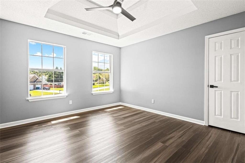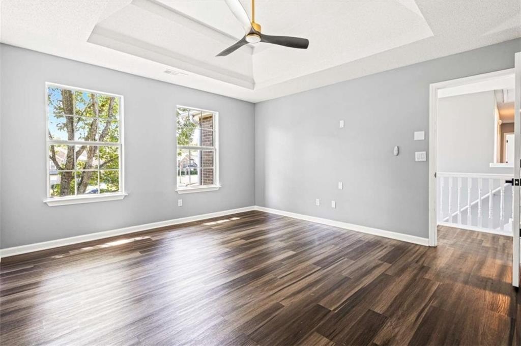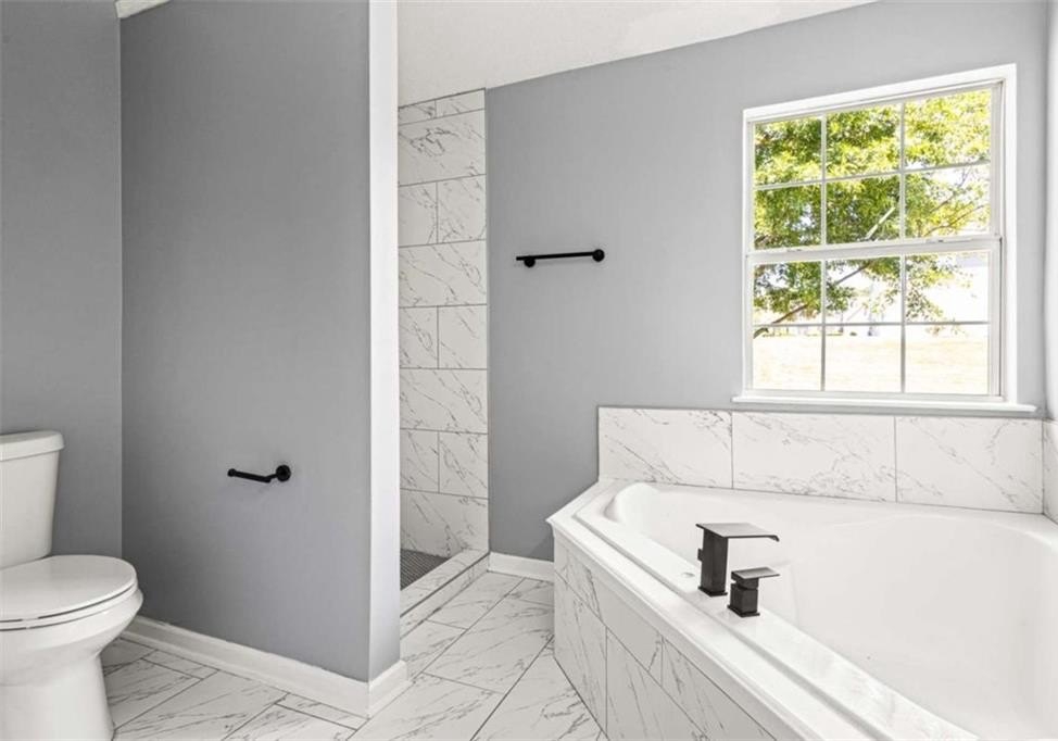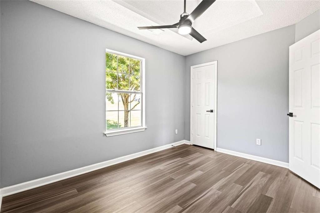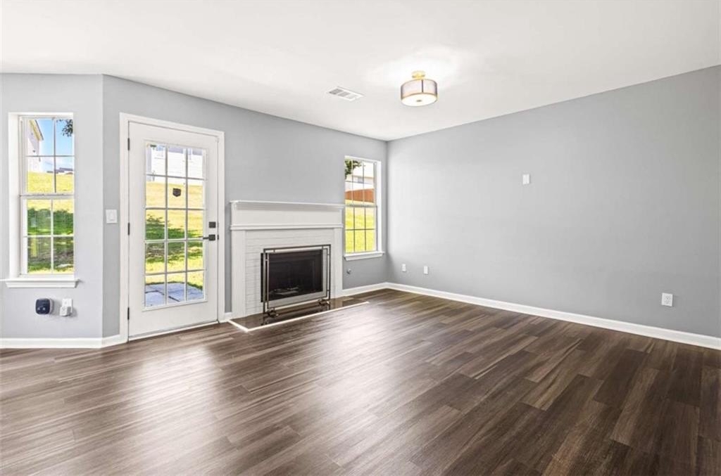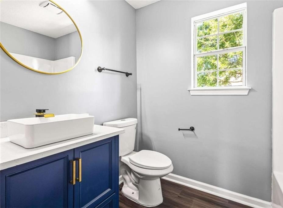 Welcome to 4664 Seagull Cove, a beautifully renovated two-story, 4 bedroom, 2.5 bathroom home offering over 2,100 sq. ft. of modern living space in the desirable Hairston Forest subdivision located in Decatur. Listed at $389,900, this home has been thoughtfully updated with designer finishes, smart home features, and stylish upgrades throughout. Enter the foyer, where a dramatic contemporary chandelier with floating LED rings makes a striking first impression. The dining room is anchored by a bold modern chandelier with smoked glass globe shades, creating the perfect atmosphere for entertaining. The renovated kitchen is a showpiece, featuring a Samsung French door Smart refrigerator, Samsung stainless steel gas range with griddle, a stainless steel vent hood, and a farmhouse apron-front sink with a black-and-gold commercial pull-down faucet. Custom two-tone cabinetry (navy lowers with brass hardware and soft gray uppers) is paired with quartz countertops and a subway tile backsplash, while smoked glass pendant lights add the finishing touch. The family room centers around a classic white fireplace with updated surround and hearth, complemented by modern semi-flush ceiling lights that bring warmth and style. Upstairs, the primary suite is a true retreat, featuring a sleek three-blade ceiling fan with remote control, a spa-like bath with dual vessel sinks, black-and-gold waterfall faucets, a deep soaking tub, and a luxurious walk-in shower with marble-style tile, rainfall showerhead, and penny tile flooring. The suite is finished with a lighted LED vanity mirror for a modern touch. Additional bathrooms feature designer vanities with quartz tops, navy cabinetry, and waterfall faucets, continuing the elegant design theme throughout. Smart home features include an Ecobee smart thermostat and a Vivint home security system, giving you energy efficiency, comfort, and peace of mind. Outside, the home sits on a quiet cul-de-sac street, close to shopping, schools, and major highways for easy commuting. With its modern finishes, smart upgrades, and spacious layout, this renovated home is ready for its new owner. Offered at $389,900. Don't miss your chance to make this beautifully updated home yours! This property qualifies for the Chase Homebuyer Grant which provides $5,000 for buyers closing on this property as a primary residence with Chase Home Mortgage using an FHA, VA or a Conventional Loan. If the buyer closes with a Chase VA Loan the buyer can receive an additional 2,000.00. The grant is first applied to lower the interest rate, then applied to Chase fees or other fees; remaining funds can be applied toward the down payment on applicable loans.