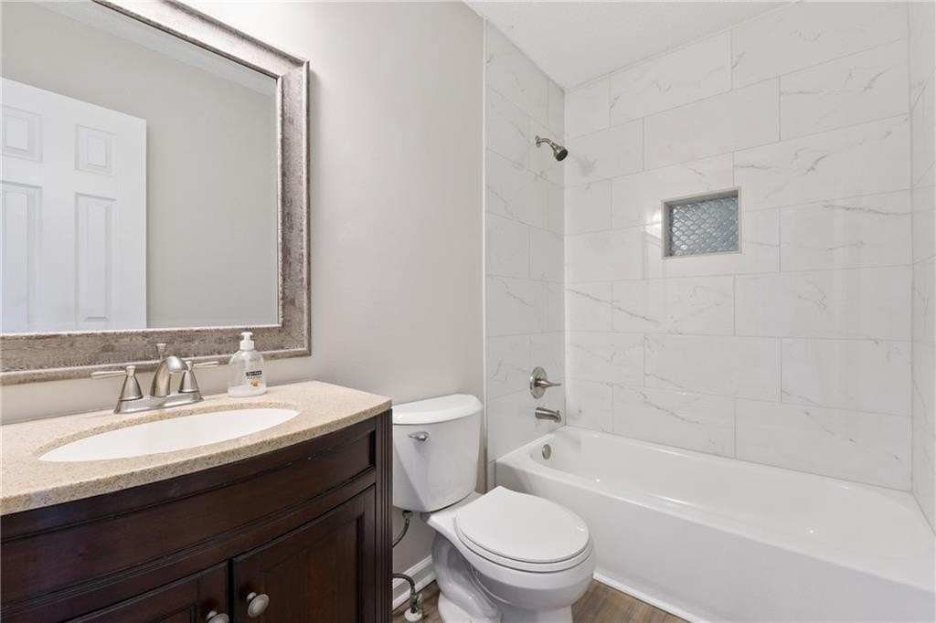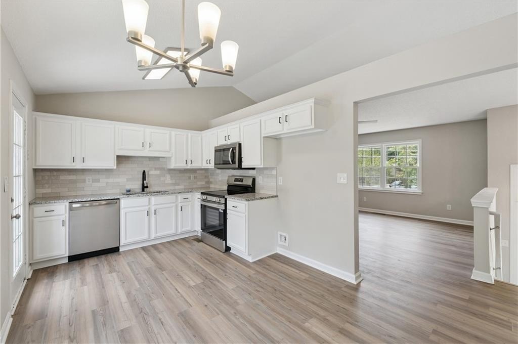 Split-level living has never looked better in this gorgeous Cartersville gem! New vinyl flooring flows throughout the expansive floor plan, paired with a bright neutral palette that radiates warmth. The vaulted, cozy living area will delight you with a welcoming fireplace greeting you as you step inside. The large, updated kitchen shines with bay windows, sleek new granite counters and backsplash, as well as stainless steel appliances. The master bedroom features bay windows and an adjoining bath with a walk in closet, and a new large luxurious tile shower. The spacious secondary bedrooms and updated bathrooms offer ample room for family, guests, or hobbies. A partial, finished basement adds versatility with a full bathroom, a bedroom or cozy living area—perfect for movie and game nights or accommodating visitors. The house has many fresh updates throughout such as a new roof, hot water heater, paint, floors, counter tops, light fixtures, and plumbing fixtures. Step outside to a two-tiered deck overlooking a huge, flat backyard, ideal for al fresco dining under the stars or sunny afternoon barbecues. You’ll find idyllic suburban living just minutes from vibrant downtown Cartersville, with local parks and the Cartersville Country Club nearby, plus easy access to Lake Allatoona for fun-filled lake days. Schedule your showing today and discover the life within Cartersville you’ve been dreaming of!