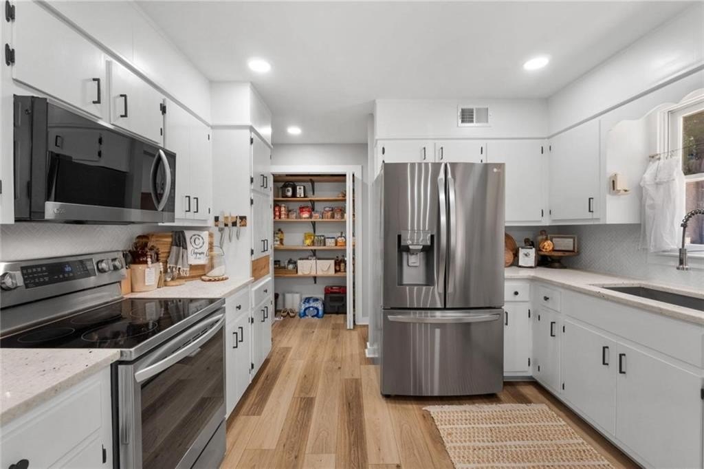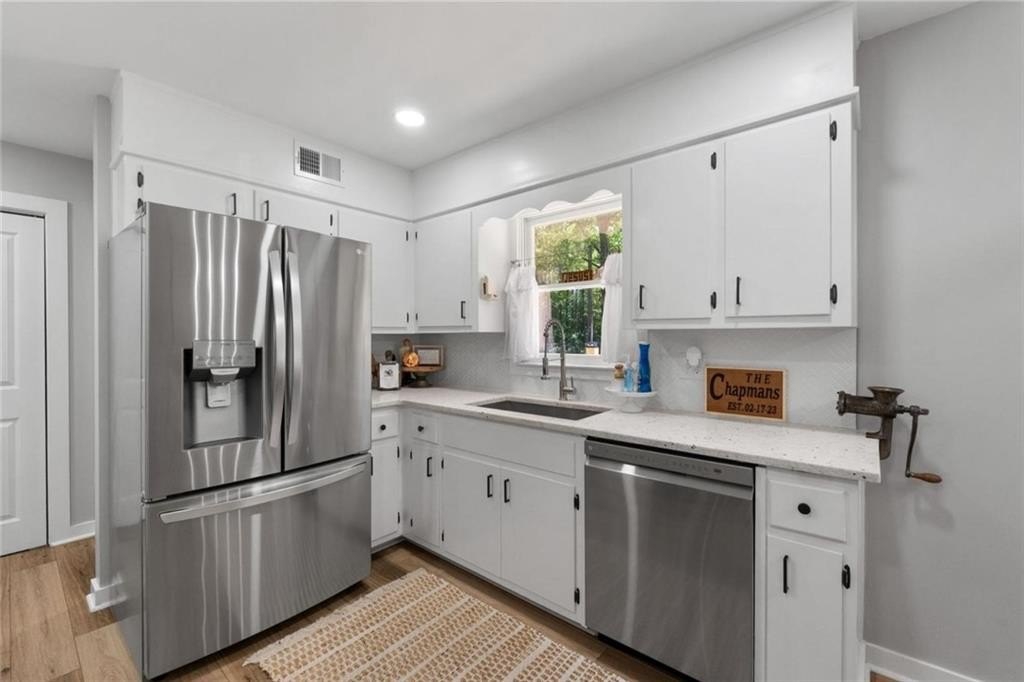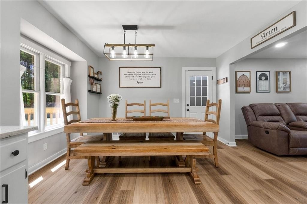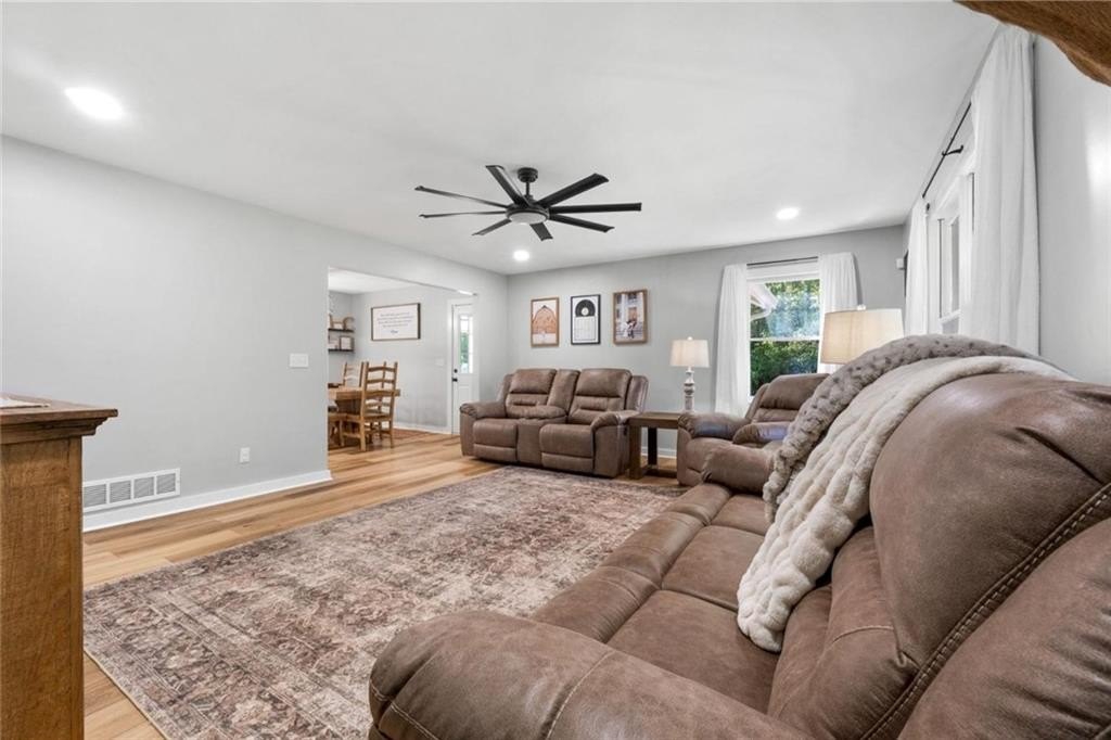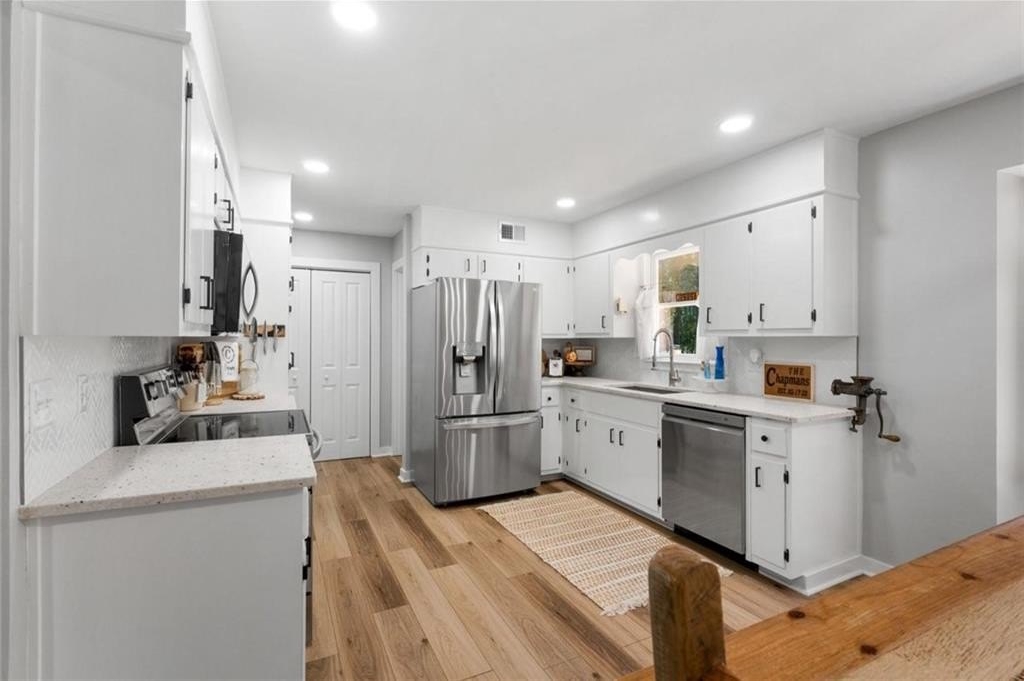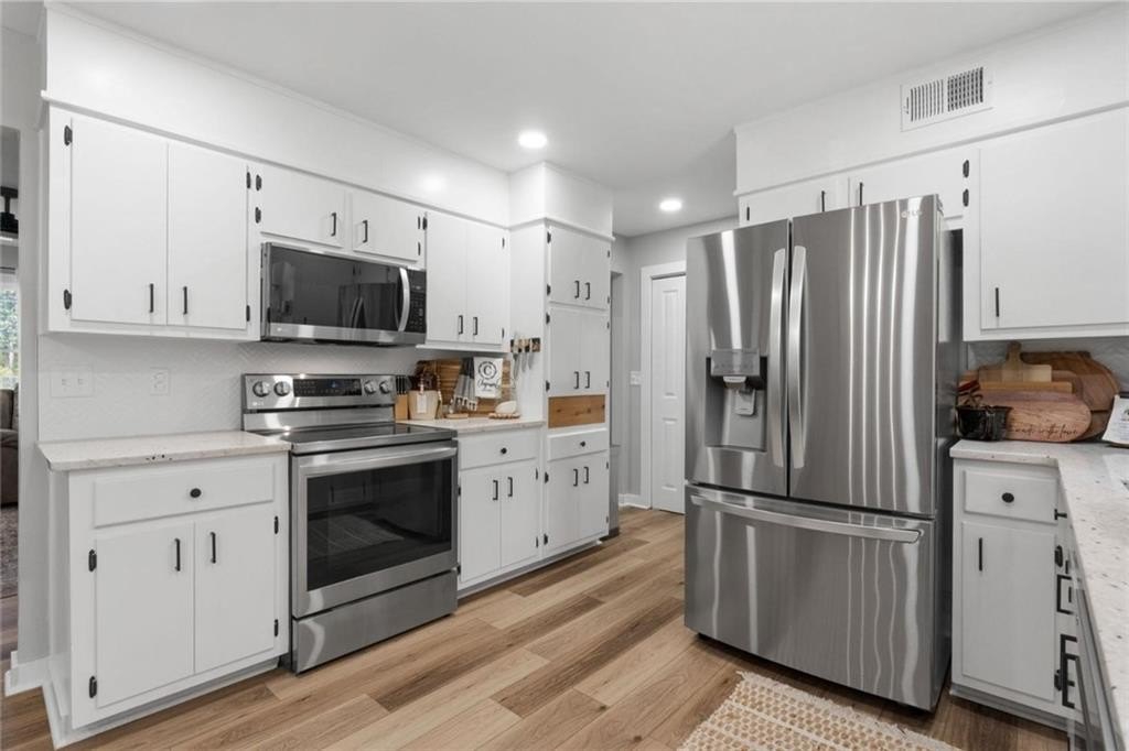 At the heart of the home, the eat-in kitchen has been fully renovated with granite countertops, a stylish backsplash, new appliances, updated hardware, and abundant cabinet and counter space, plus a convenient pantry and nearby laundry room. The large family room provides the perfect gathering spot, while the welcoming rocking chair front porch invites quiet mornings and relaxing evenings.