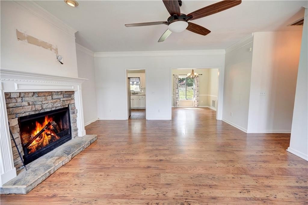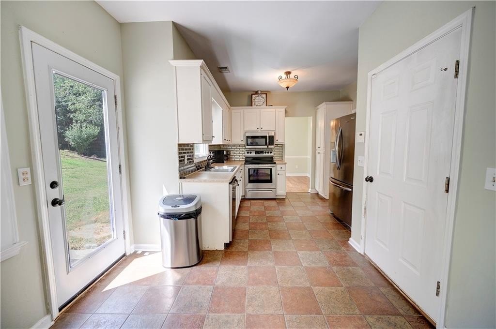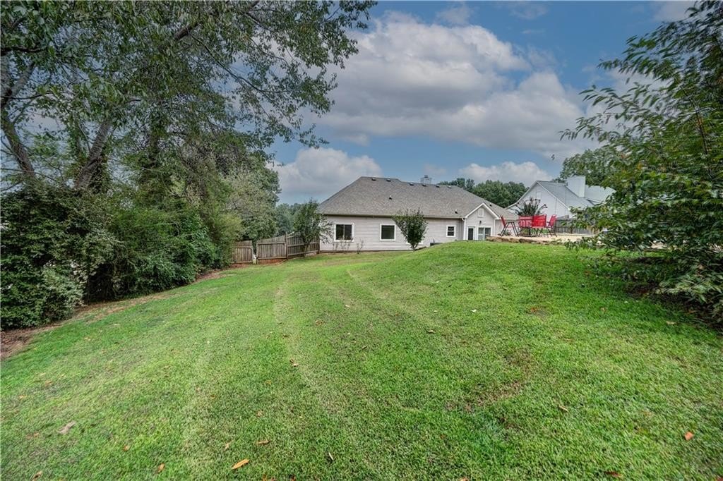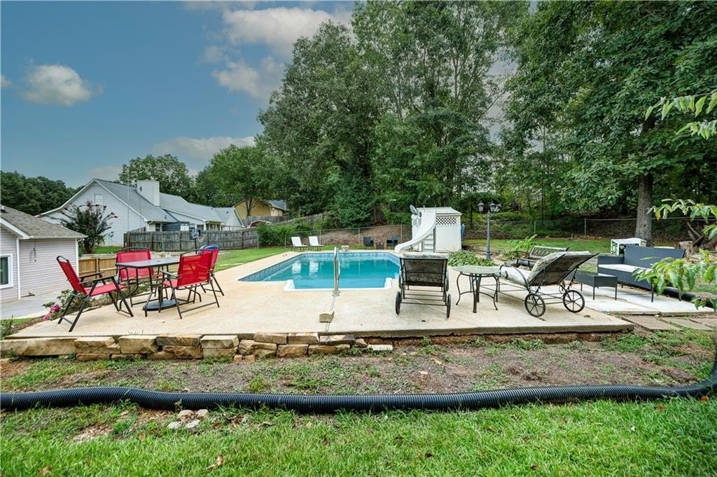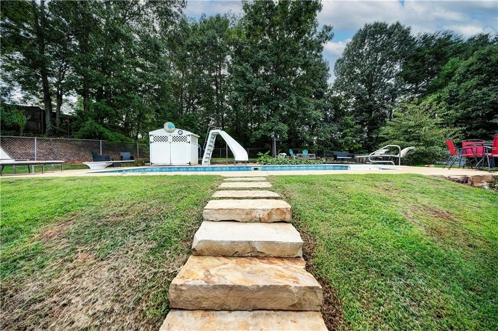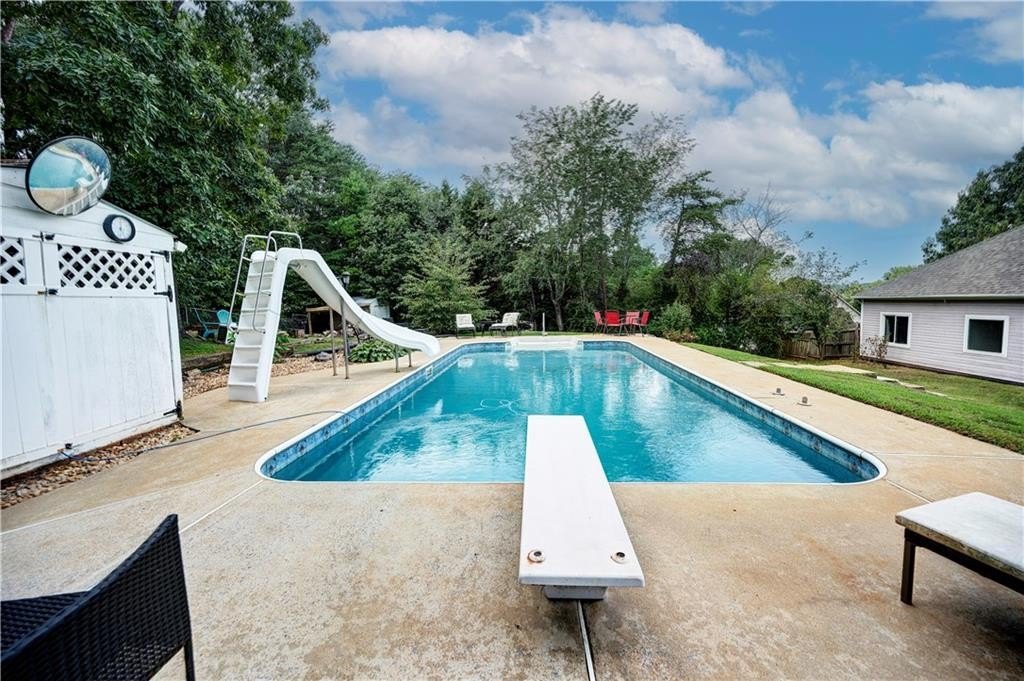 REGAL RANCHER IN INDIAN HILLS WITH PICTURESQUE OUTDOOR OASIS! Experience ONE-LEVEL LIVING in this charming abode, nestled in Rydal in the Blue Ridge Mountains foothills, and perfectly positioned hillside upon its spacious lot. The exterior is adorned with LOW-MAINTENANCE vinyl siding, with handsome, faux stone accents gracing the facade. Step inside the front entry to be welcomed into the LIVING ROOM, with romantic FIREPLACE as the focal point - the perfect space for snuggling in with a pumpkin spice mocha on those crisp, Autumn evenings. The EAT-IN KITCHEN is adorned with alabaster cabinetry, STAINLESS APPLIANCES (including stove/oven, microwave, dishwasher, and REFRIGERATOR), and striking SUBWAY TILE, and also houses the laundry facilities. 2-CAR GARAGE opens to the kitchen for convenient grocery unloading, and also houses a handy storage closet. A FORMAL DINING ROOM is also in place for more elegant meals, and would also make a great HOME OFFICE. The LARGE AND LUXURIOUS OWNER’S SUITE opens to a PRIVATE ENSUITE BATH, complete with DOUBLE VANITIES, JETTED TUB, SEPARATE SHOWER with glass door, WATER CLOSET, and spacious WALK-IN WARDROBE. The secondary bedrooms are generously sized, and share a hall bath with tub/shower combo, which is conveniently positioned for guest use. Enjoy FALL COOKOUTS in the privacy of the FENCED-IN BACKYARD. The spacious patio is accessed from the kitchen, and provides a vivacious venue for al fresco dining. Handsome stone steps lead the way to the IN-GROUND POOL, which features a DIVING BOARD, SLIDE, and is operated with a chlorine system. This is a fabulous space for ENTERTAINING and enjoying Fall festivities. The PUMP HOUSE keeps the elements protected, and provides room for the storage of pool supplies. Also on the property is an OUTBUILDING with additional LEAN-TO STORAGE, and a FIREPIT to enjoy with friends. Convenient to I-75, Cartersville, Waleska, Canton, Calhoun, and Fairmount with local attractions, shopping, dining, and more all within easy reach. NO HOA FEES! Don’t miss the opportunity to call 22 Indian Hills Drive HOME.