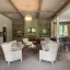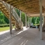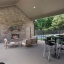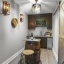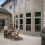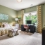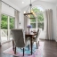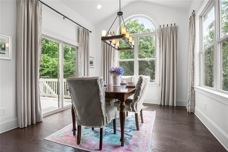 breakfast area with 3 walls of windows or doors that puts you in mind of a tree house.