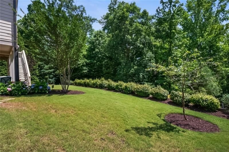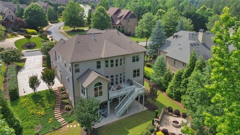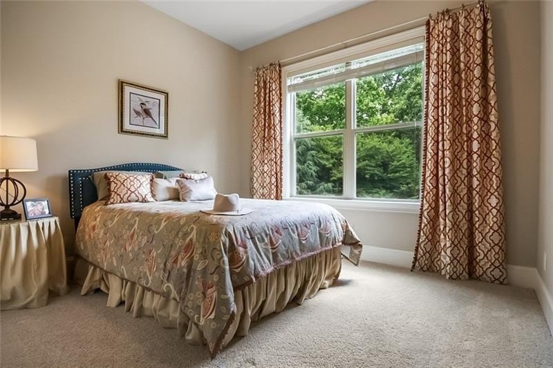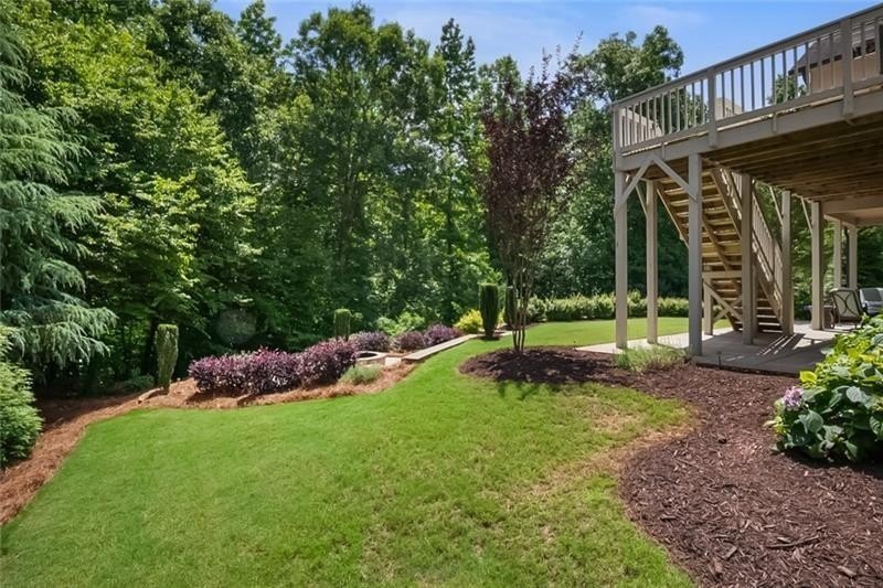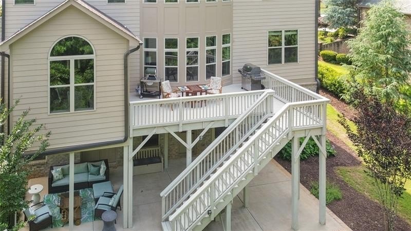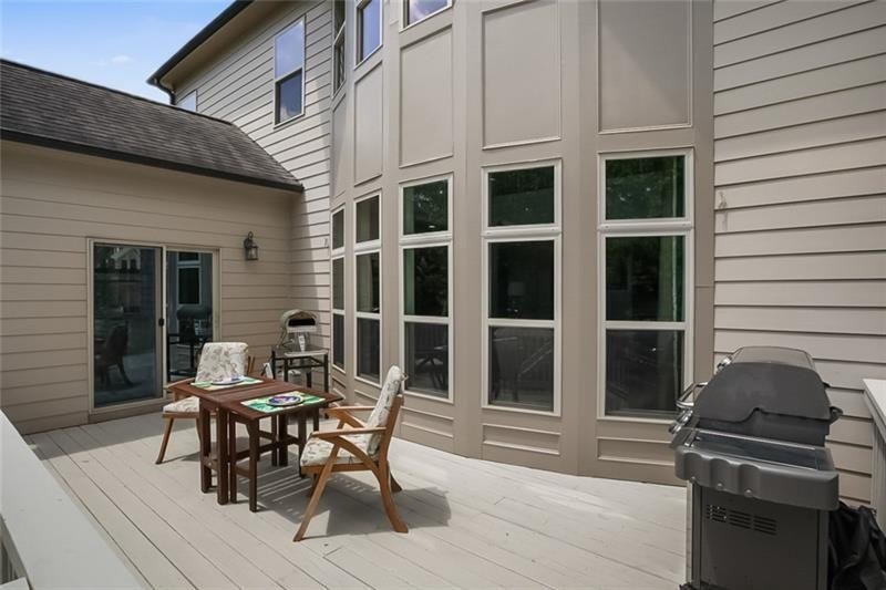 Outside is a large deck equipped with a gas grill overlooking the lush, private backyard.
