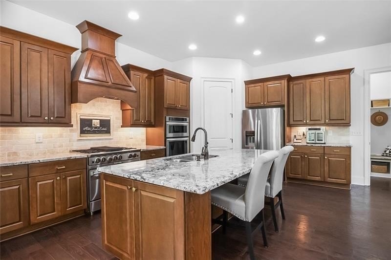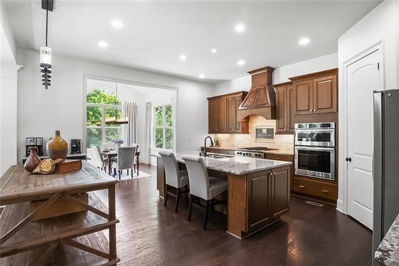 also a bar area and circling back to the dining room a butler’s pantry. The kitchen has a