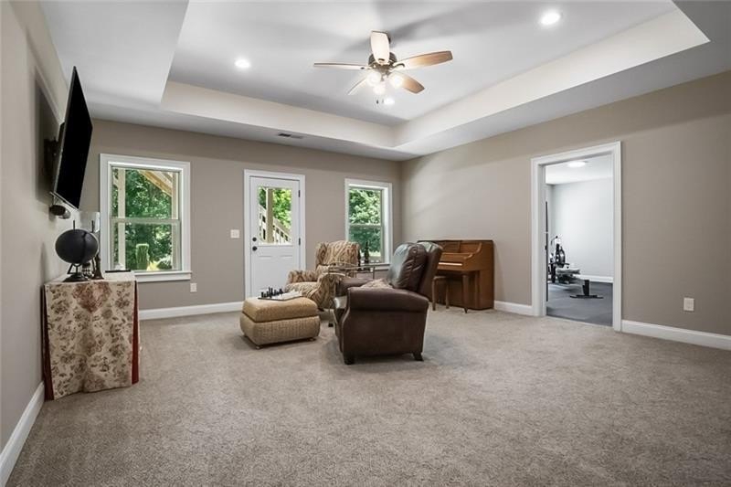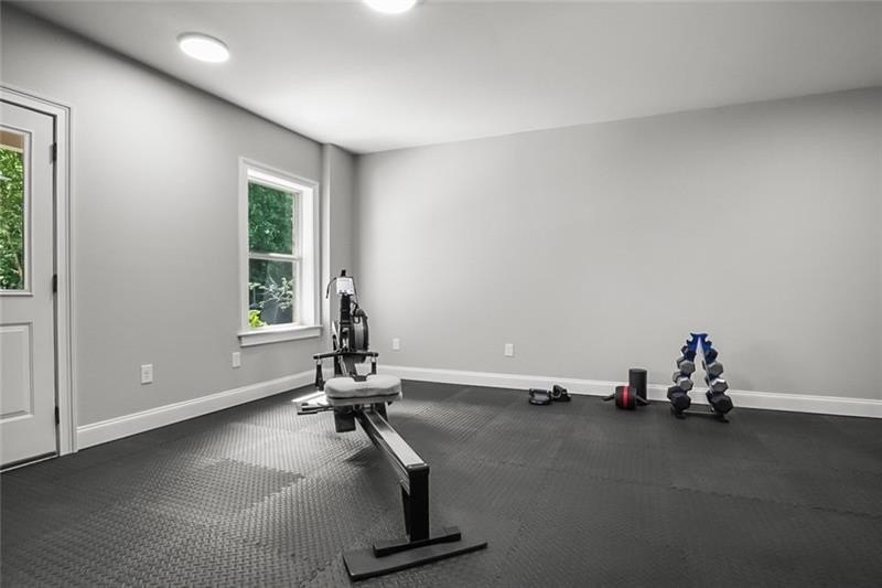 The terrace level is finished with a media room, rec room, large gym, office or bedroom,