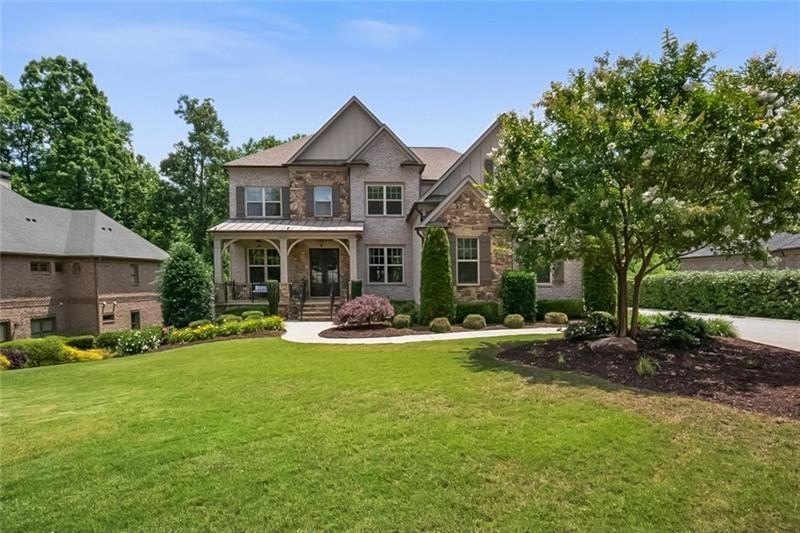 Beautiful custom-built home with a timeless brick and stone exterior in the highly