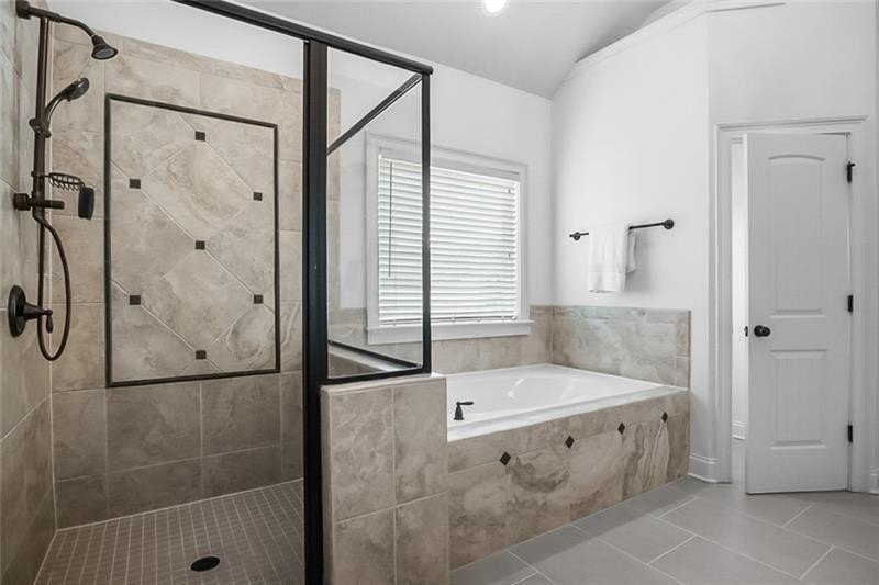double sinks, soaking tub and walk in shower, a huge walk in closet and secondary