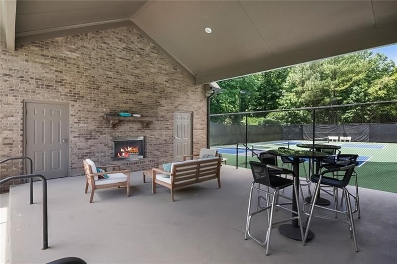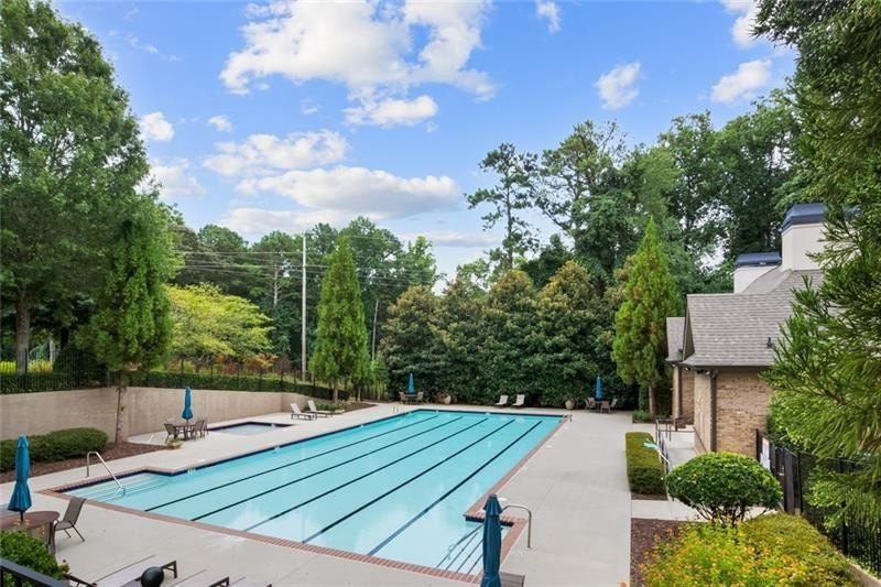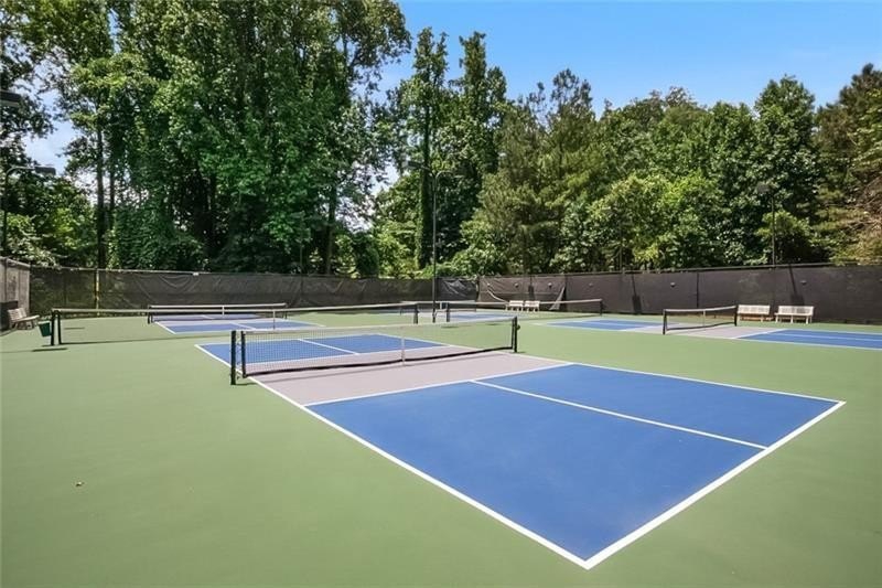features a large clubhouse, Olympic and kiddie pools, 4 pickleball courts, 3 tennis