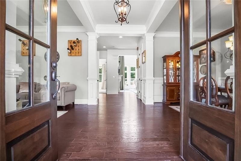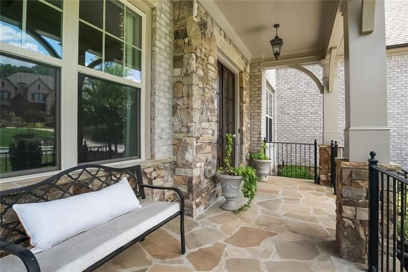 stacked stone porch through the 8-foot double front doors past the large formal dining