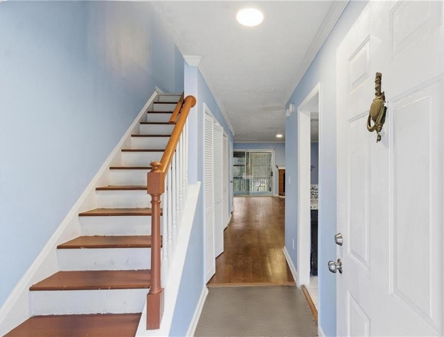 Well-maintained end-unit townhouse in the Hidden Forest community of Clarkston. This two-story brick home offers 2 bedrooms, 2.5 bathrooms, and approximately 1,238 square feet of comfortable living space. The main level features a spacious family room with a fireplace, hardwood and laminate flooring, and skylights that fill the home with natural light. The open layout provides an easy, functional flow ideal for everyday living. Upstairs, both bedrooms are generously sized with full bathrooms easily accessible, while a convenient half bath is located on the main level. Additional highlights include a laundry closet and a private deck that provides a quiet outdoor retreat. The property offers two-car parking and no HOA with no rental restrictions. Ideally located near major highways, shopping, parks, and local schools.