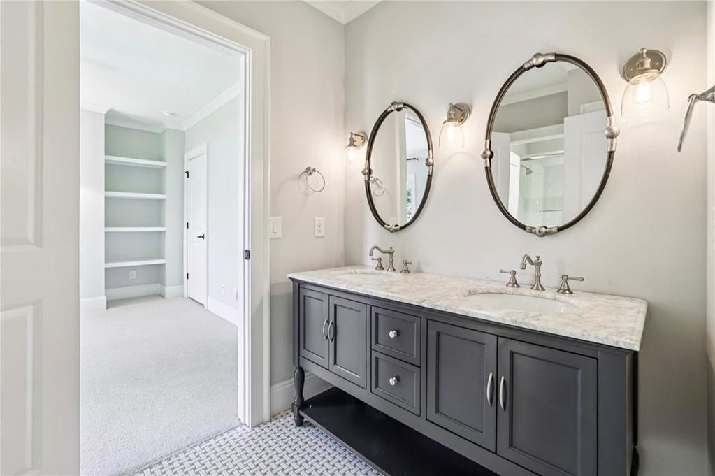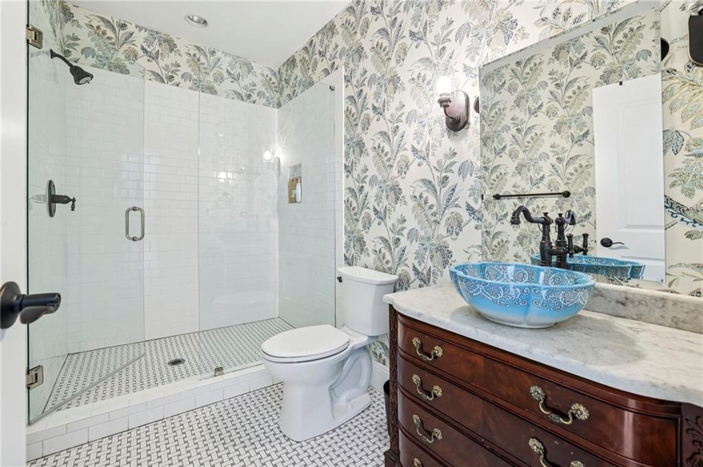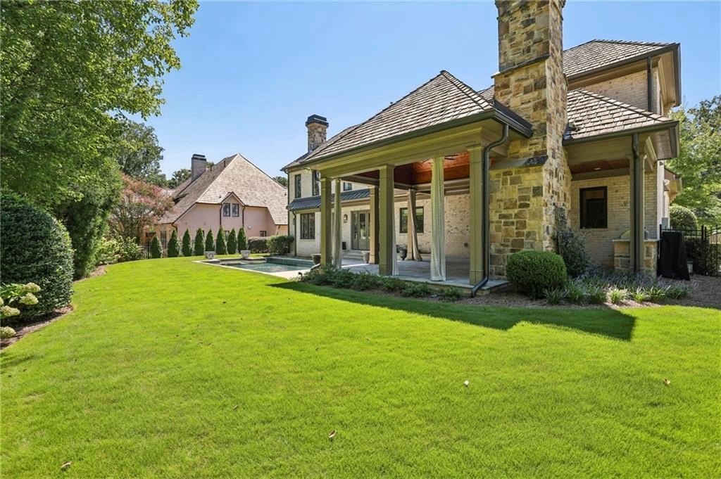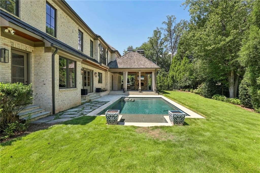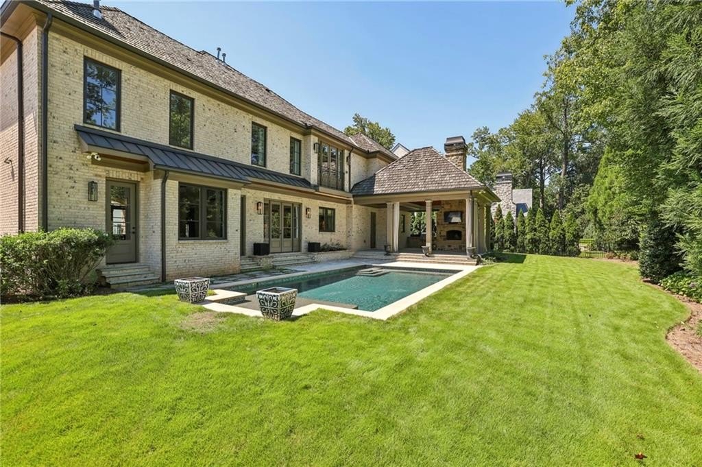 Rare Newer Construction in Historic Brookhaven: just what everyone is looking for! Tucked away on a quiet cul-de-sac, this beautifully designed home offers everything today’s buyer desires: a walk-out backyard, sparkling pool, and expansive covered fireside porch for year-round entertaining. Inside, the open floor plan is centered around the large fireside family room, seamlessly connected to the chef’s kitchen with spacious island and bar area. Between the kitchen and family room, a versatile space invites endless possibilities—whether as a cozy lounge for games or a relaxed eating area, perfect for casual dining with a view of the pool. A separate but open dining room allows for more formal entertaining, while thoughtful family spaces include a mudroom, pool bath, and convenient laundry. A guest powder room is privately positioned on the opposite side of the home. The dramatic staircase leads to a serene primary suite, complete with a tucked-away office, marble spa bath featuring dual vanities, a large dual-head shower, and a morning bar. A generous walk-in closet completes the retreat. 3 additional bedrooms and 2 bathrooms complete the upper level. The lower level is designed for entertaining with a media room or recreation space, beverage area, and half bath. Special touches include interior design by Melanie Turner, custom window treatments, and a hand-painted Georgia Bulldog-inspired powder room. Set in the heart of Historic Brookhaven—one of Atlanta’s most sought-after neighborhoods—this home also offers an unmatched lifestyle. Residents enjoy an active community atmosphere with biking, walking, and gathering around the prestigious Capital City Country Club. Pristine and move-in ready, this home is the perfect blend of timeless style and modern comfort in an unbeatable location.
