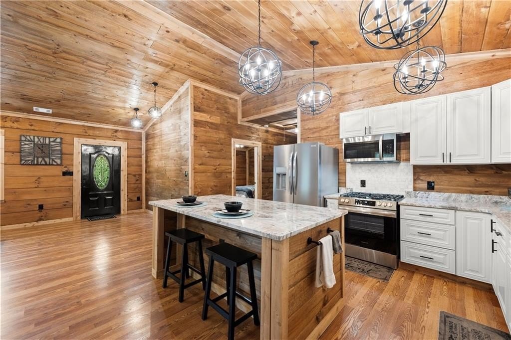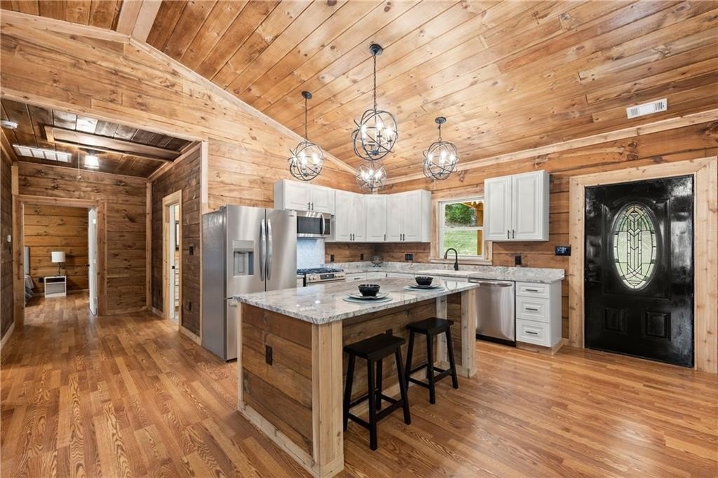 Brand NEW custom personal built LOG Cabin. Granite counter tops, top of line appliances, tile bathrooms, large master closet. The Cabin on the mountain is set on 5.19 acres, decently cleared around the house and front yard, yet it is set back far enough for some private front porch sitting with some woods for privacy to enjoy mother nature and all the wildlife that cruises by. The cabin is set up with a home generator, storage shed, and a small shed/workshop. All interior items stay. This is mountain living at it's best!