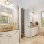 Upstairs, the expansive master retreat beckons with a bay window sitting area, his and her closets, and a spa-like en-suite bathroom boasting separate vanities, a large soaking tub, and a glass-enclosed shower. Just outside the master, the second-story deck offers a perfect spot for stargazing or enjoying front-row views of Oakhurst festivals. Two additional sizable bedrooms with soaring ceilings and an adjoining stylish bathroom complete this level, ensuring comfort and privacy for everyone.
