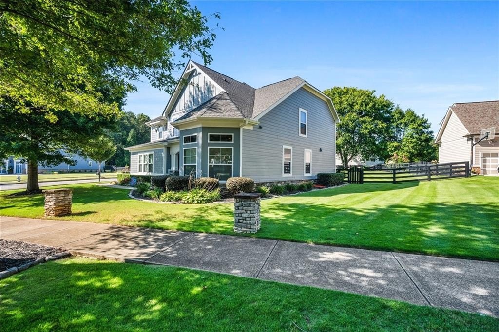 Welcome to your dream home in the highly sought-after Carmichael Farms swim/tennis community! This stunning 5-bedroom, 3.5-bath Craftsman-style beauty blends timeless elegance with modern convenience. Step inside to discover a spacious and flexible layout featuring a generous main-level suite—perfect as a primary bedroom or guest retreat. Upstairs, the expansive owner's suite offers a luxurious spa-inspired bath and an oversized walk-in closet you'll love.