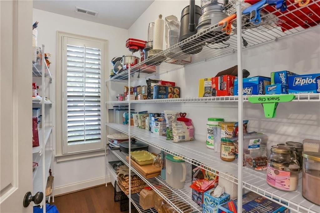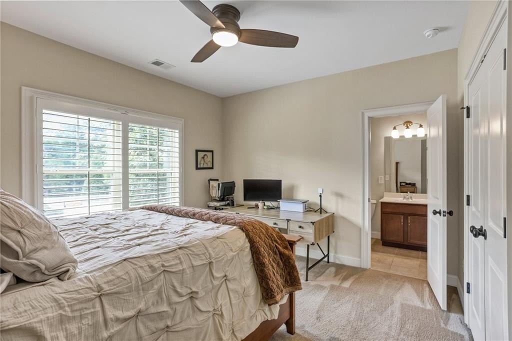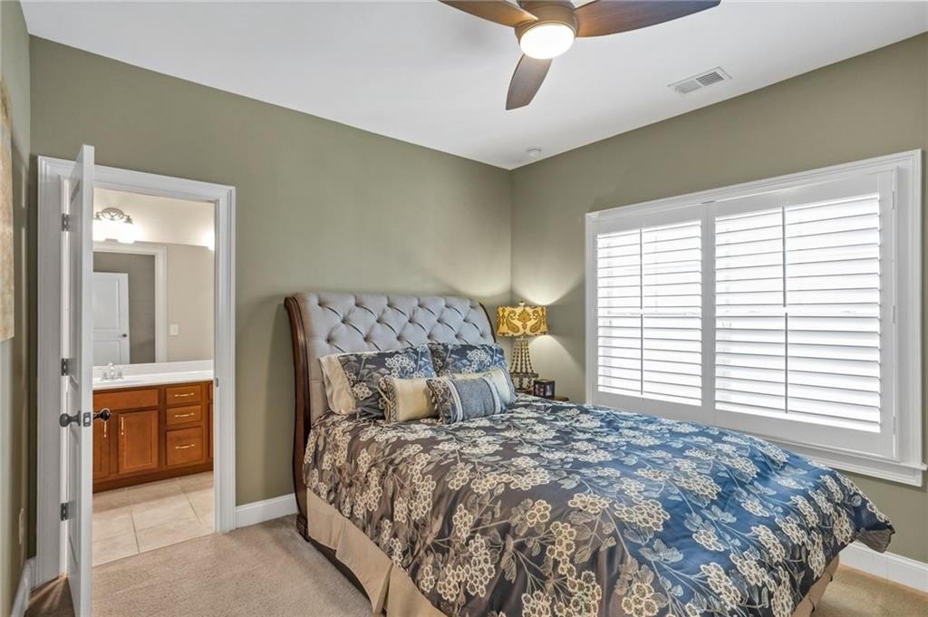 Step outside to a serene screened-in porch with a cooling ceiling fan, offering year-round enjoyment. The main level also boasts a formal dining room, walk-in pantry, stylish powder room, and a well-appointed laundry suite with sink.