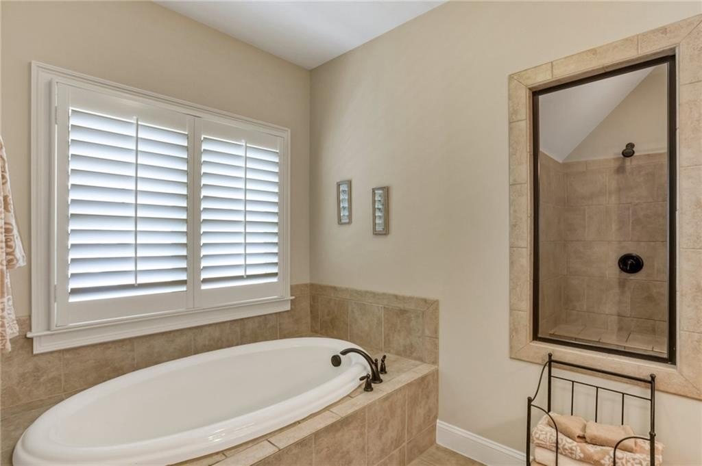 Upstairs, retreat to the luxurious primary suite, complete with a spa-inspired bath showcasing dual vanities, a soaking tub, and a glass-enclosed shower. Four additional bedrooms and three designer bathrooms provide abundant space for family or guests. Plantation shutters throughout add a touch of timeless elegance.