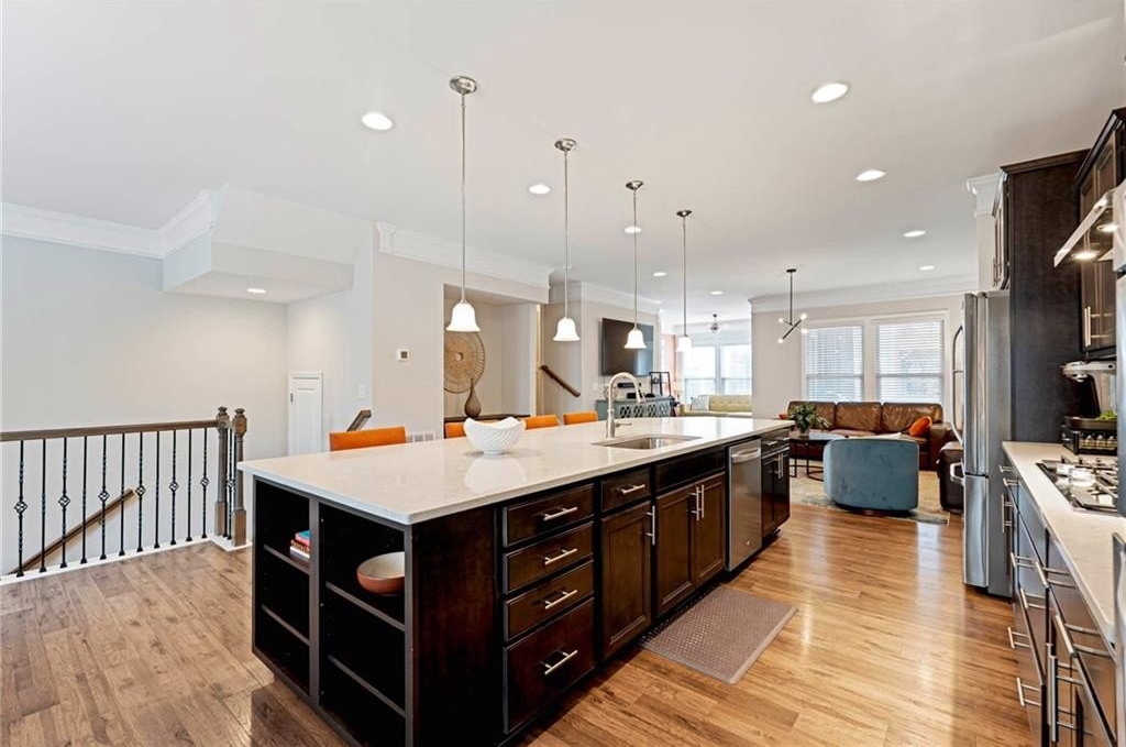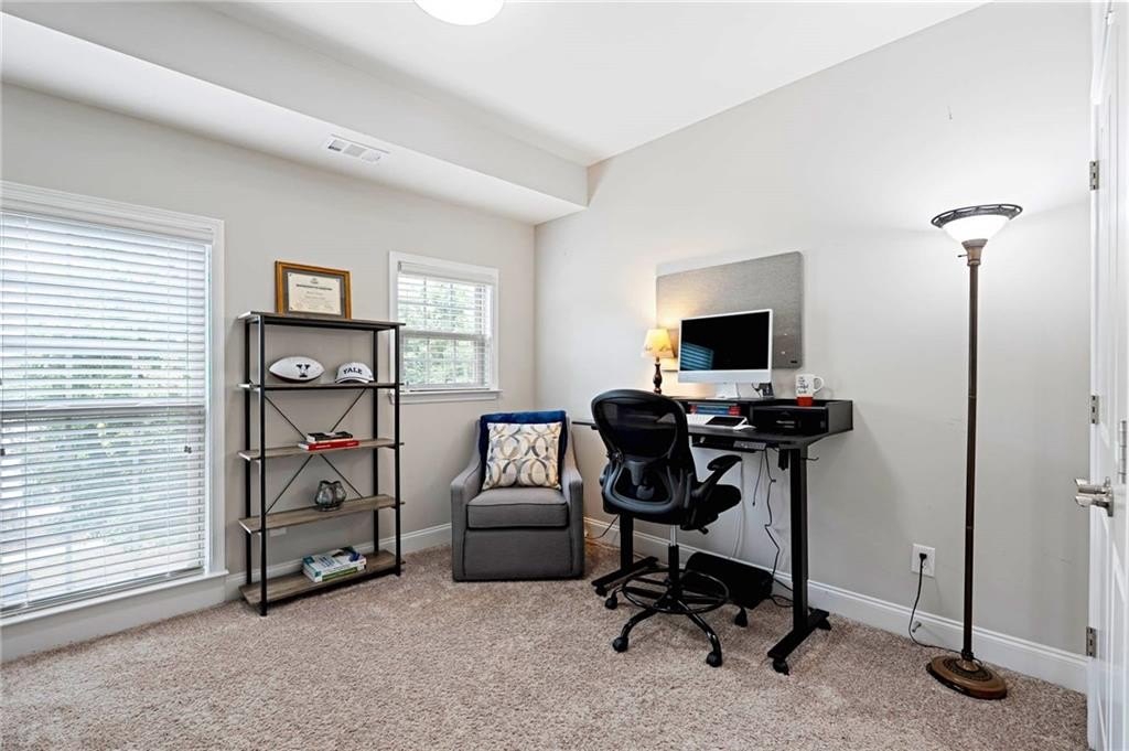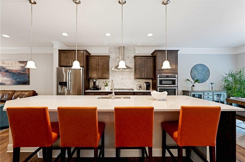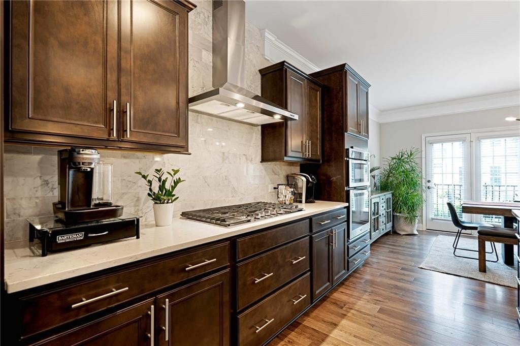 Discover an extraordinary opportunity to enjoy elegant, low-maintenance living in one of Atlanta's most desirable communities. This beautifully appointed townhome offers serene views of the lush greenspace of a pocket park, setting the tone for a lifestyle that balances comfort, convenience, and sophistication. As you step through the front door on the main level, you'll notice the attention to detail. Trim and molding accents elevate the entry and main living level, creating a warm yet refined atmosphere. The open-concept design is perfect for entertaining, with an expansive kitchen that blends style and functionality. Culinary enthusiasts will appreciate the 36"- 5 burner natural gas cooktop, premium appliances, abundant cabinetry, and a large island that flows effortlessly into the dining area and family room. The Dining Room features a graceful Juliet Balcony that allows the gentle evening breeze to waft through the space. From the spacious Family Room, you can step out onto to the rear deck, outfitted with privacy drapery-ideal for outdoor dining and relaxation. Upstairs, the Primary Suite is a true retreat. A spacious seating area and private balcony add luxury to this truly special space. The spa-inspired bath boasts dual vanities, a walk-in shower, and a private water closet, while the dual walk-in closets with custom shelving systems provide generous storage. With nearly instant hot water from the advanced dual water heater system, every detail has been designed for comfort and ease. The convenience continues with a lock-and-leave lifestyle: HOA services cover exterior maintenance, landscaping, and dwelling insurance, giving you more time to enjoy your home and community. Parkside at Mason Mill offers an unmatched location-just minutes from Emory University, Emory Hospital, the CDC, and the new Children's Hospital, with quick access to I-85, I-285, and Downtown Decatur. The community itself is rich with amenities, including a gorgeous, tree-lined Jr. Olympic-size pool, a well-outfitted workout room, an enormous stunning clubhouse, and the adjacent 120-acre Mason Mill Park with hiking and biking trails, tennis courts, playgrounds, and even ranger-led nature programs. Your fur baby will love the nearby dog park where they can run free and make new friends. Meticulously maintained and move-in ready, this townhome offers the best of both worlds: peaceful retreat and vibrant city living. Come experience Parkside at Mason Mill-where every detail is designed to elevate your lifestyle.