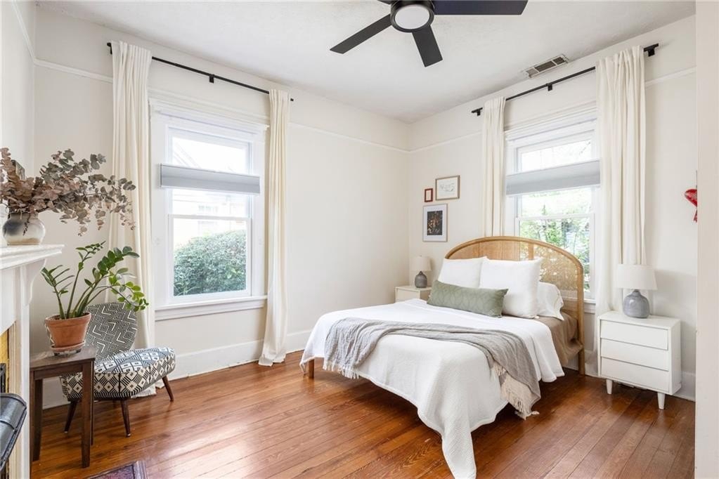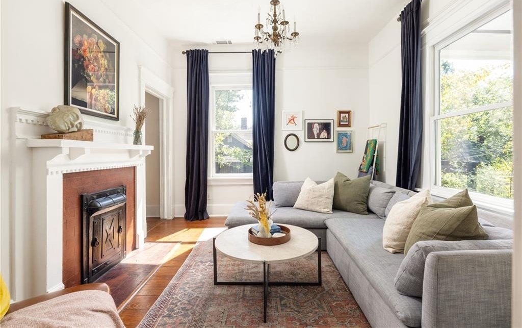 Welcome Home ATL to this 1920’s Grant Park gem, tucked along beloved Sydney Street and just half a block from the park itself. From the moment you step onto the rocking chair front porch overlooking a pollinator garden, you’ll feel the charm this home carries so effortlessly. Inside, sunlight fills every room, highlighting original pine floors, soaring 10-foot ceilings, and three decorative fireplaces that add warmth and character. The kitchen, fully redone in 2022, combines modern updates with timeless appeal—featuring an induction range, butcher block countertops, a pantry, and two-tone cabinetry. Morning light pours in through east-facing windows, creating a peaceful start to the day. Outdoor living shines here, too. A private courtyard with hand-built stone walls is perfect for dinner parties under the stars, while fruiting blueberries, muscadine vines, and a pear tree provide a homegrown touch. Practical updates bring peace of mind, including all new high-efficiency windows and full attic insulation completed in 2019. This is a home where neighbors become friends, where evening walks in Grant Park are part of your daily rhythm, and where thoughtful renovations meet enduring character. More than a place to live, it’s a place to belong, and opportunities like this are rare!