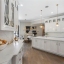 Entertain in style in the formal dining room or the richly paneled cigar lounge/library. A stunning two-sided fireplace anchors the expansive great room and leads seamlessly into the chef’s dream kitchen—featuring an ILVE Majestic dual-fuel range, quartzite counters, oversized island, sunny breakfast nook, and walk-in pantry. - - -