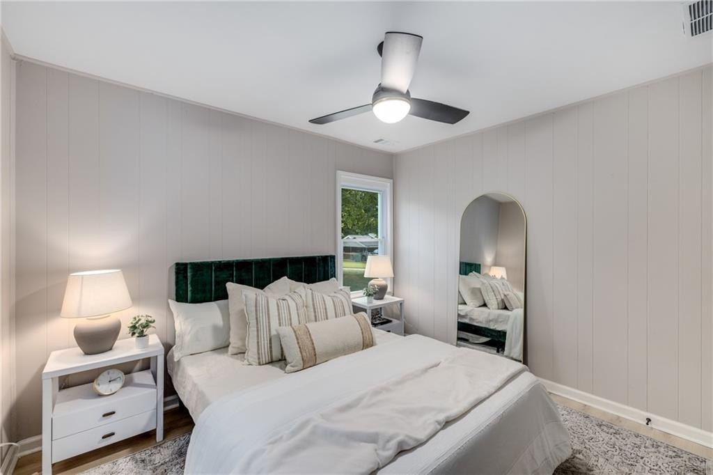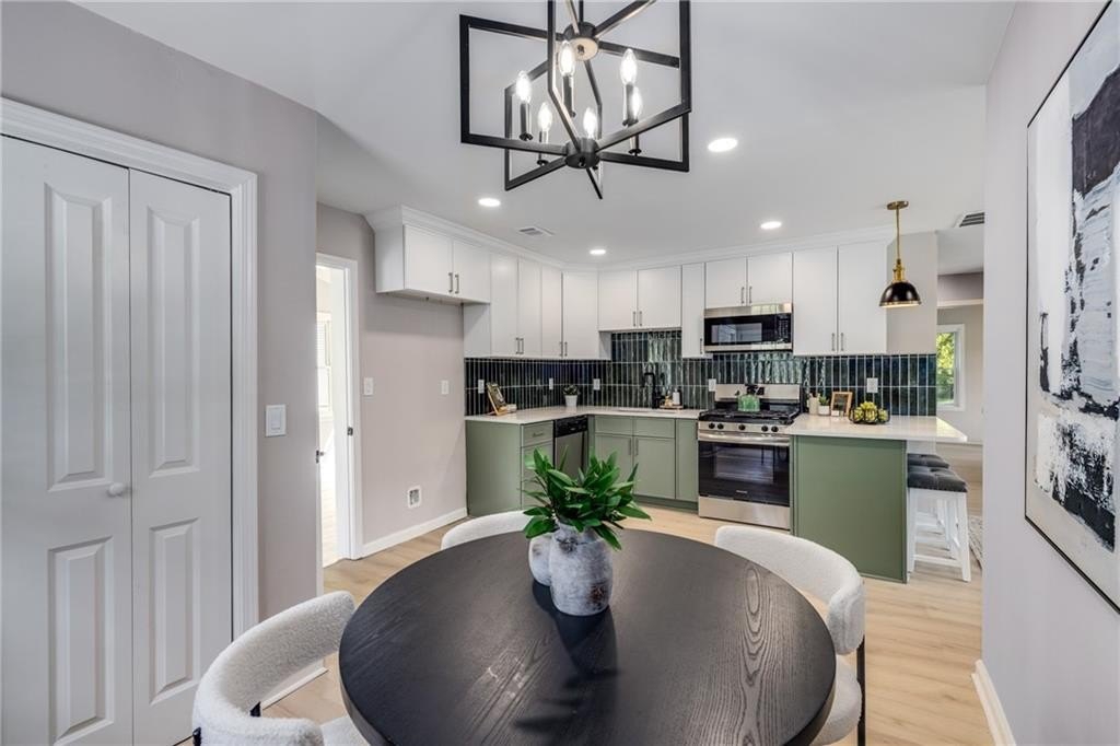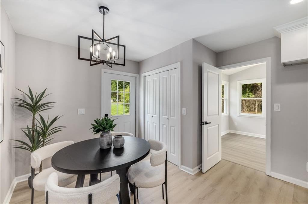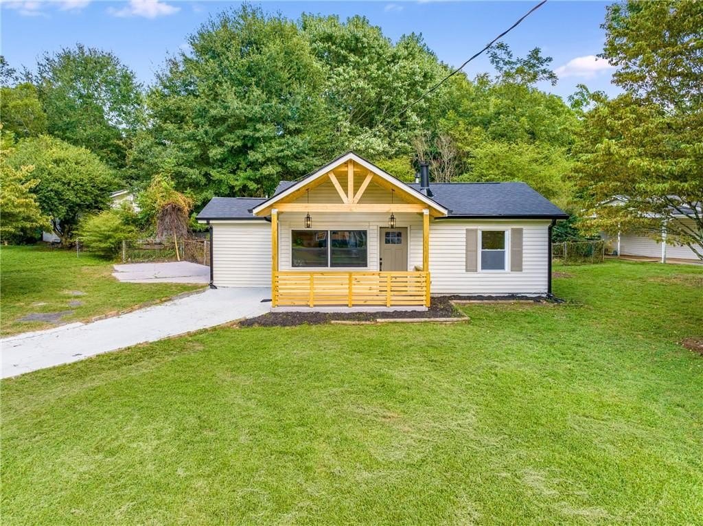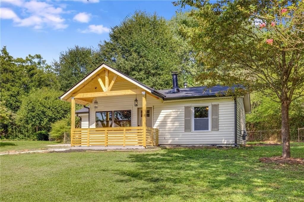 Why rent when you can own and start building equity? This darling Smyrna cottage has been thoughtfully updated inside and out, offering style, function, and curb appeal in one package. Step onto the covered front porch and into a cozy fireside living room with a dining nook just off the sleek new kitchen. The kitchen has been fully renovated featuring all-new cabinetry, stainless steel appliances, gas cooking, a stylish tiled backsplash and breakfast bar. With 3 bedrooms and 1 bathroom, this home provides flexibility to fit your lifestyle. The third bedroom has a closet and can serve as a bedroom, but also makes a perfect bonus room, home office, or additional living space. Set on a large, sunny corner lot with plenty room for parking, the property also includes a large outbuilding, previously used as a workshop-turn it into your she shed, man cave, or extra storage for garden tools and weekend play toys! Recent upgrades include a new roof, new HVAC, new flooring, and new fixtures throughout, giving buyers peace of mind and modern comfort. Just minutes from I-285, Cobb Parkway, South Cobb Drive, and Atlanta Road, placing you within easy reach of The Battery, Vinings, Midtown, Downtown and easy airport commute. Less than 2 miles to the popular Smyrna Market Village and the arts-forward Jonquil Plaza, boutiques, dining spots, and community events-whether a starter home or anyone looking to enjoy life in a thriving Smyrna location, this move-in ready gem won’t last long.