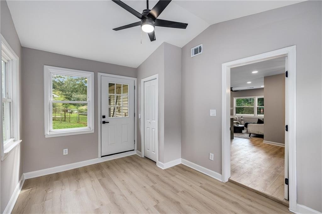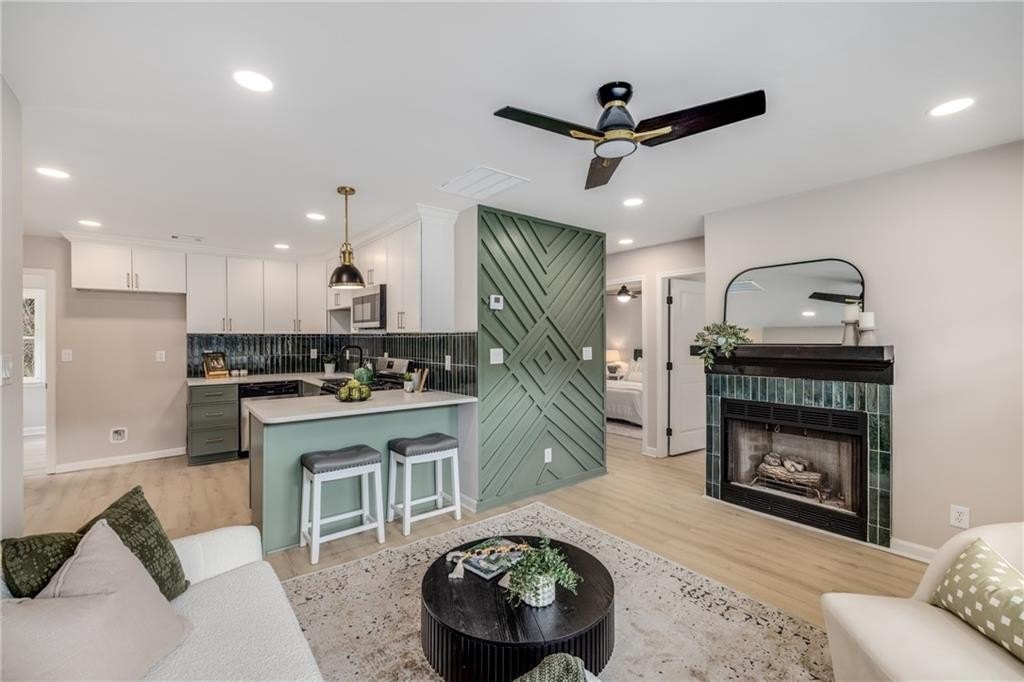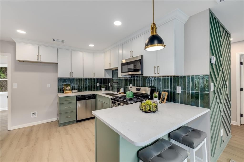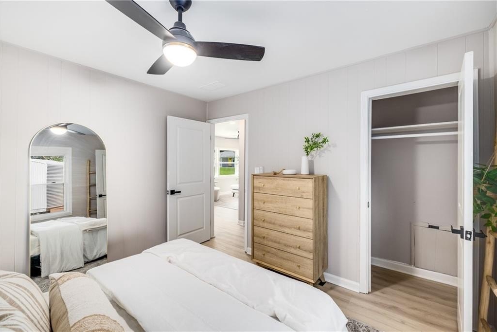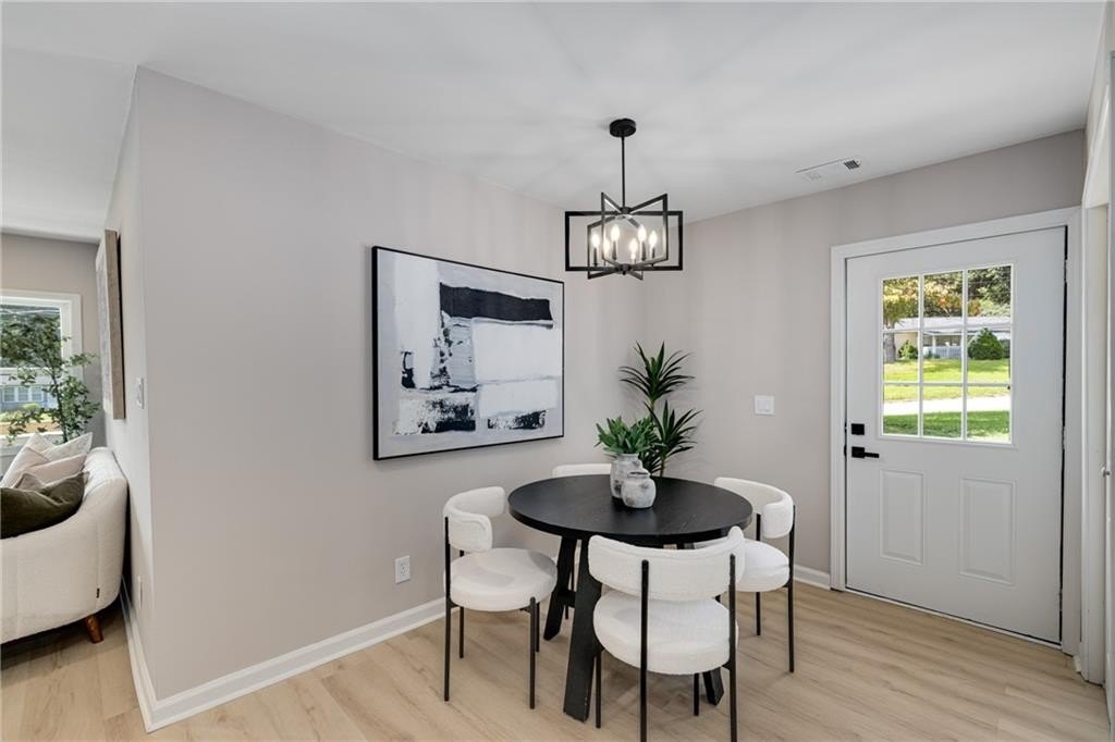 Why rent when you can own and start building equity? This darling Smyrna cottage has been thoughtfully updated inside and out, offering style, function, and curb appeal in one package. Step onto the covered front porch and into a cozy fireside living room with a dining nook just off the sleek new kitchen. The kitchen has been fully renovated featuring all-new cabinetry, stainless steel appliances, gas cooking, a stylish tiled backsplash and breakfast bar. With 3 bedrooms and 1 bathroom, this home provides flexibility to fit your lifestyle. The third bedroom has a closet and can serve as a bedroom, but also makes a perfect bonus room, home office, or additional living space. Set on a large, sunny corner lot with plenty room for parking, the property also includes a large outbuilding, previously used as a workshop-turn it into your she shed, man cave, or extra storage for garden tools and weekend play toys! Recent upgrades include a new roof, new HVAC, new flooring, and new fixtures throughout, giving buyers peace of mind and modern comfort. Just minutes from I-285, Cobb Parkway, South Cobb Drive, and Atlanta Road, placing you within easy reach of The Battery, Vinings, Midtown, Downtown and easy airport commute. Less than 2 miles to the popular Smyrna Market Village and the arts-forward Jonquil Plaza, boutiques, dining spots, and community events-whether a starter home or anyone looking to enjoy life in a thriving Smyrna location, this move-in ready gem won’t last long.