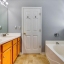 The roomy master suite includes a walk-in closet and a bathroom complete with a double vanity, garden tub, and separate shower. The level backyard features a privacy fence, making it ideal for children, pets, or simply enjoying a peaceful retreat.