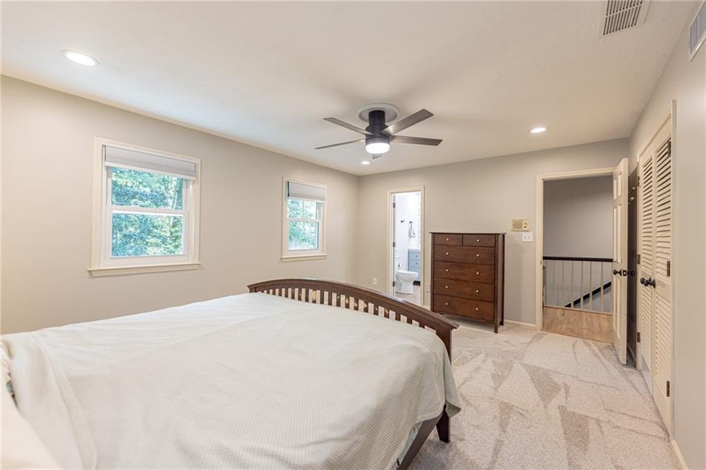 Charming 4-Bedroom Brick Front Traditional on Cul-de-Sac in Sought-After Swim/Tennis Community! Welcome to this beautifully updated 2-story traditional home, nestled on a quiet cul-de-sac in a vibrant swim/tennis community featuring a scenic lake, near walking trails, and easy access to top amenities. With 4 spacious bedrooms, 2.5 baths, and a finished basement, this home offers comfort, style, and space for every lifestyle. Step inside to find gleaming hardwood floors on the main level, fresh interior paint throughout, and renovated bathrooms that combine modern finishes with timeless design. The inviting living room features built-in bookcases, perfect for displaying your favorite reads or decor. The bright kitchen boasts stainless steel appliances, generous cabinet space, and flows into the breakfast area. Upstairs, enjoy brand new carpet and four generously sized bedrooms, including a serene owner’s suite with a beautifully updated ensuite bath. The finished basement offers flexible spaces ideal for a home gym, office, playroom, or media space with plenty of extra storage to keep things organized. Relax or entertain on the large deck or enjoy a quiet morning in the screened porch overlooking the private backyard. Additional recent upgrades include: New siding, New windows, New HVAC system. Located just minutes from shopping, dining, entertainment, parks, and top-rated schools, with quick access to I-75, I-285, and GA-400, this home offers both convenience and lifestyle. Don’t miss this move-in ready gem in a community that has it all!