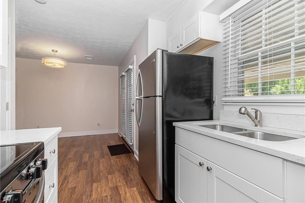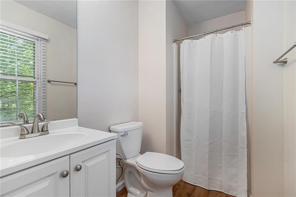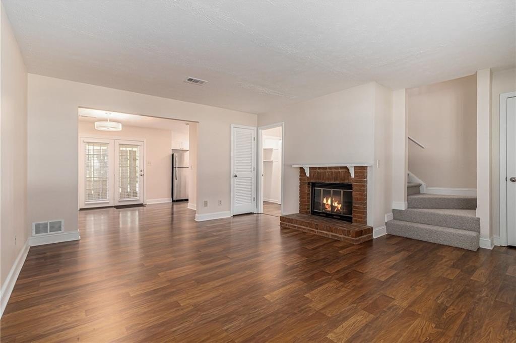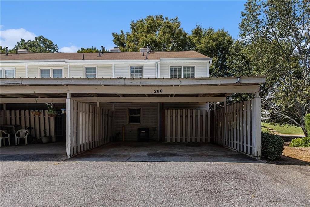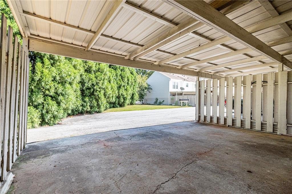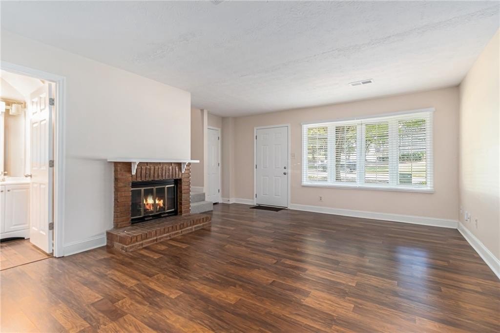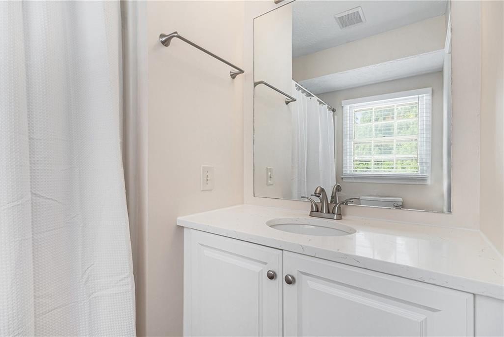 Updated, move-in ready end-unit 2BR/2.5BA townhome, conveniently located near Exit 7 of GA-400 and Downtown Roswell. The main level offers a spacious fireside family room combined with a dining area. The renovated kitchen opens to the dining and family rooms and features brand-new cabinets, stainless steel appliances, and stone countertops. A half bath with a laundry closet and a private two-vehicle covered carport complete the main level. Upstairs are two generously sized bedrooms with walk-in closets. Each bedroom has its own private bathroom, both updated with new vanities and fixtures. Additional updates include fresh paint, new flooring, updated light fixtures throughout, and a newer HVAC (2023). Enjoy close proximity to North Point Mall, Big Creek Park, Canton Street, and Avalon—all less than five miles away—offering endless options for shopping, dining, outdoor activities, and nightlife. The Holcomb Crossing community is beautifully maintained, with a low HOA of just $225 per month, which covers roof replacement, grounds maintenance, and access to a sparkling pool. Best of all, the community has no rental restrictions.