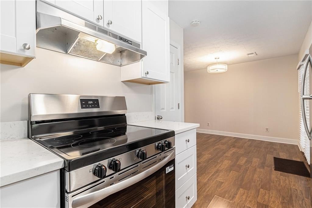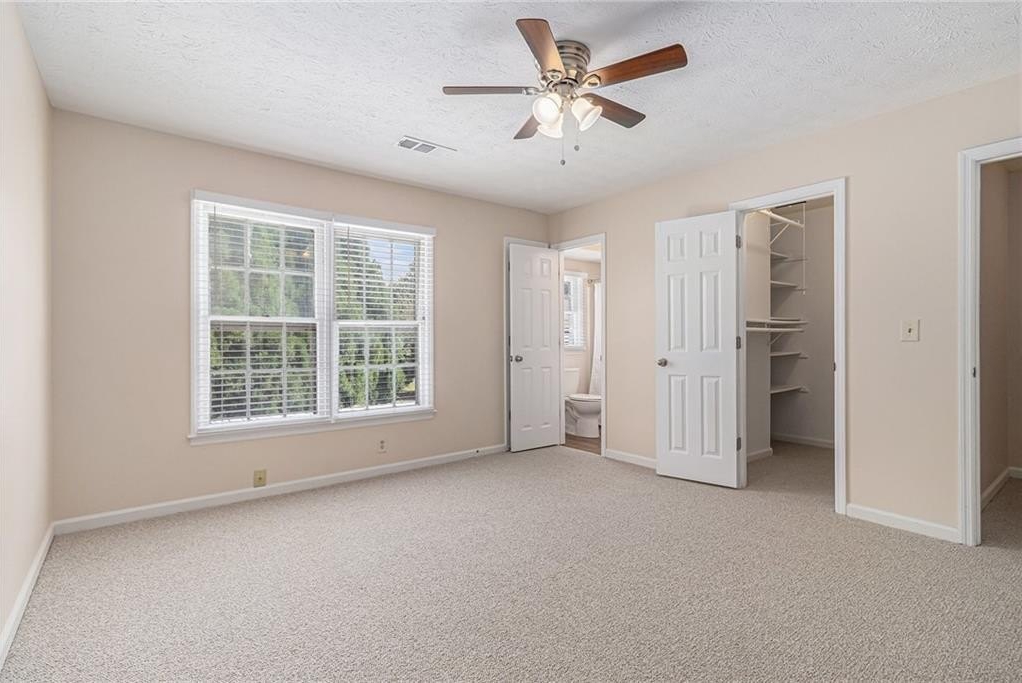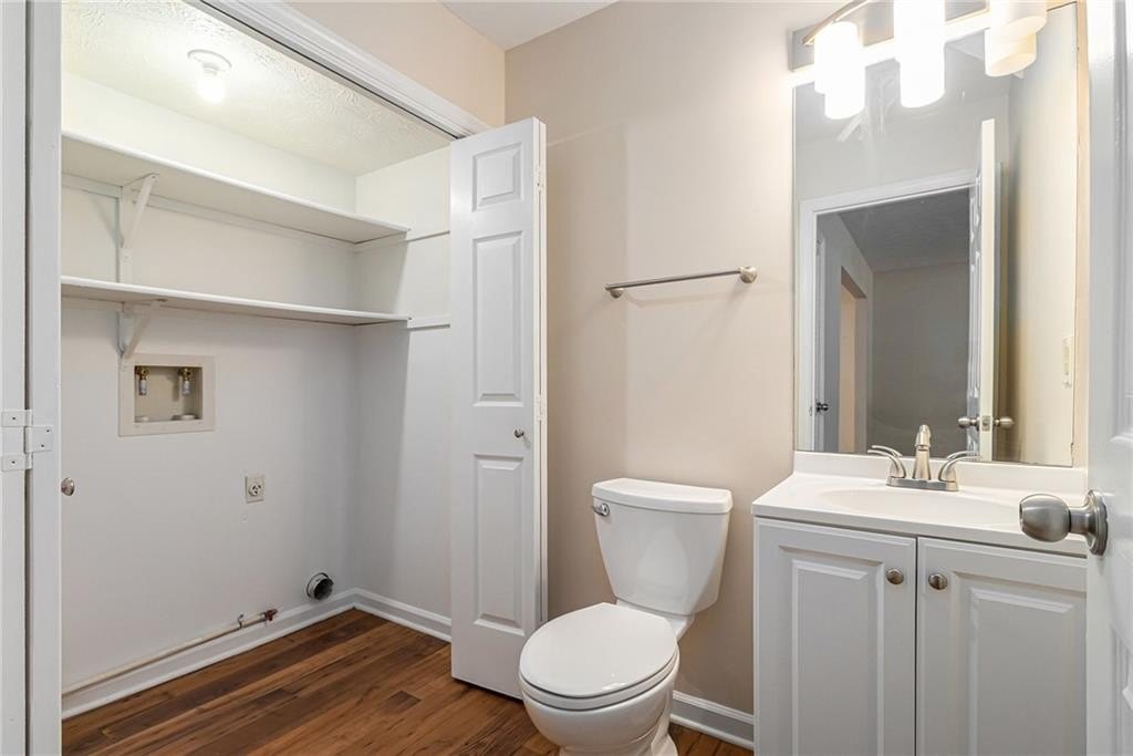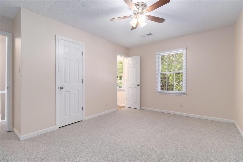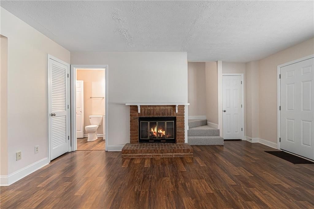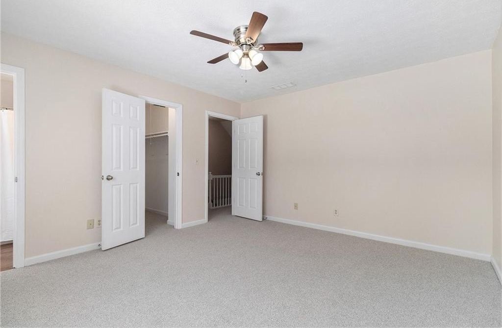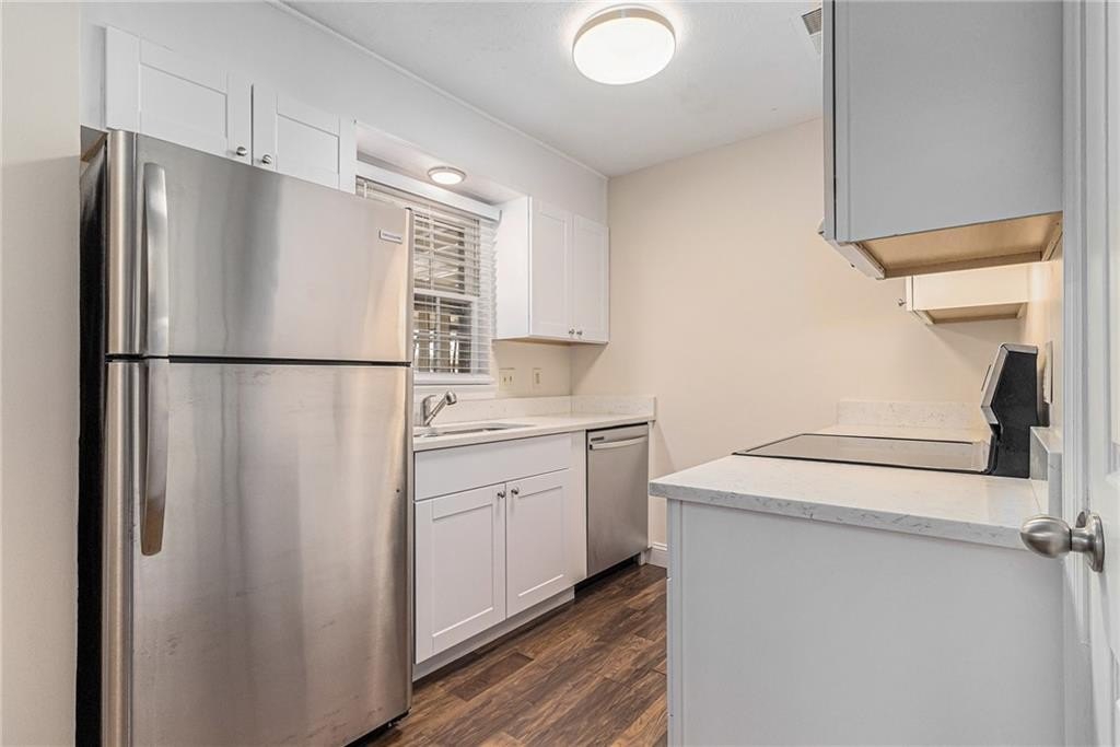 Updated, move-in ready end-unit 2BR/2.5BA townhome, conveniently located near Exit 7 of GA-400 and Downtown Roswell. The main level offers a spacious fireside family room combined with a dining area. The renovated kitchen opens to the dining and family rooms and features brand-new cabinets, stainless steel appliances, and stone countertops. A half bath with a laundry closet and a private two-vehicle covered carport complete the main level. Upstairs are two generously sized bedrooms with walk-in closets. Each bedroom has its own private bathroom, both updated with new vanities and fixtures. Additional updates include fresh paint, new flooring, updated light fixtures throughout, and a newer HVAC (2023). Enjoy close proximity to North Point Mall, Big Creek Park, Canton Street, and Avalon—all less than five miles away—offering endless options for shopping, dining, outdoor activities, and nightlife. The Holcomb Crossing community is beautifully maintained, with a low HOA of just $225 per month, which covers roof replacement, grounds maintenance, and access to a sparkling pool. Best of all, the community has no rental restrictions.