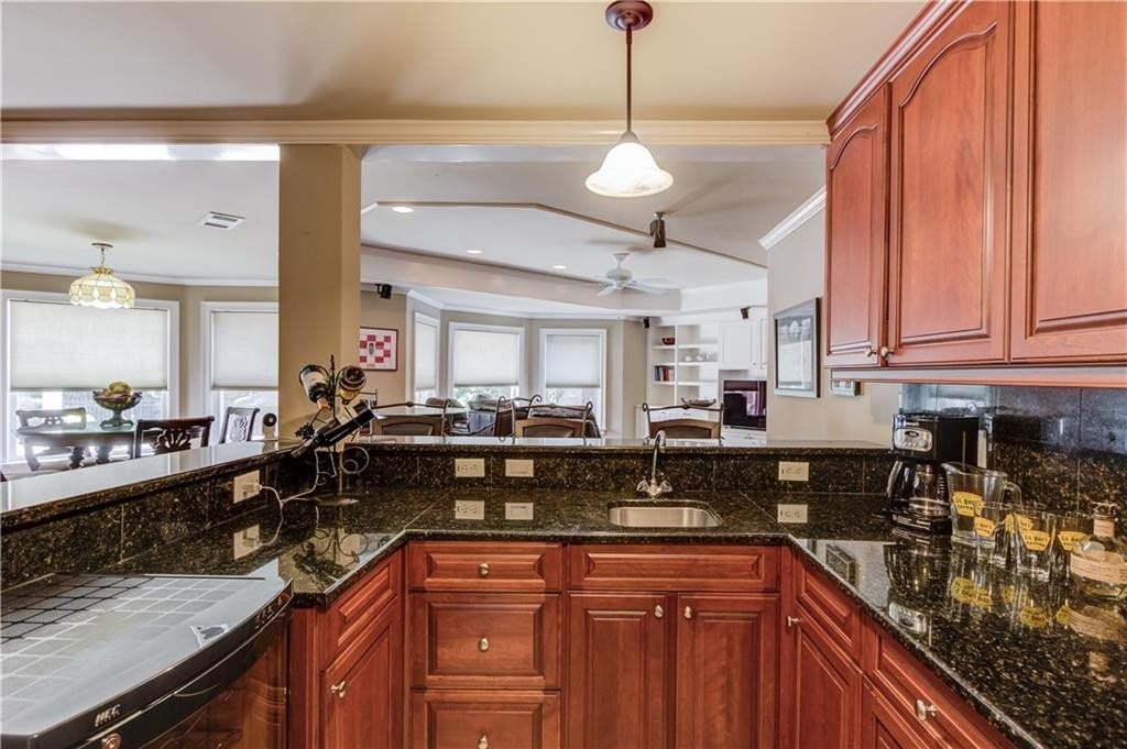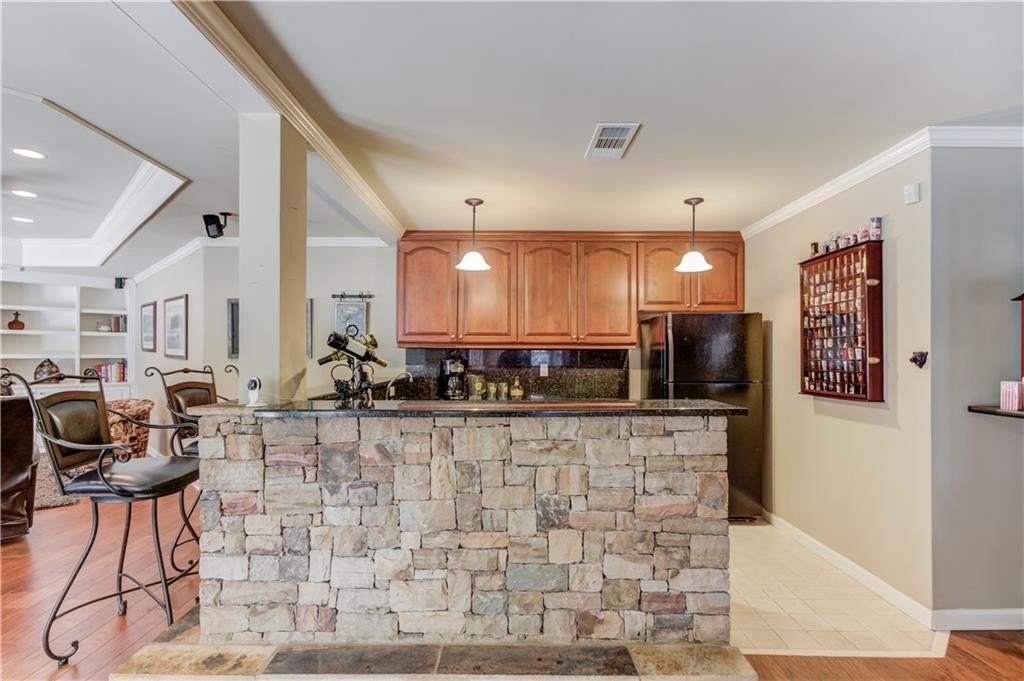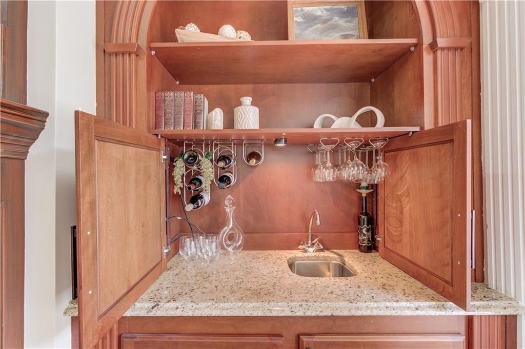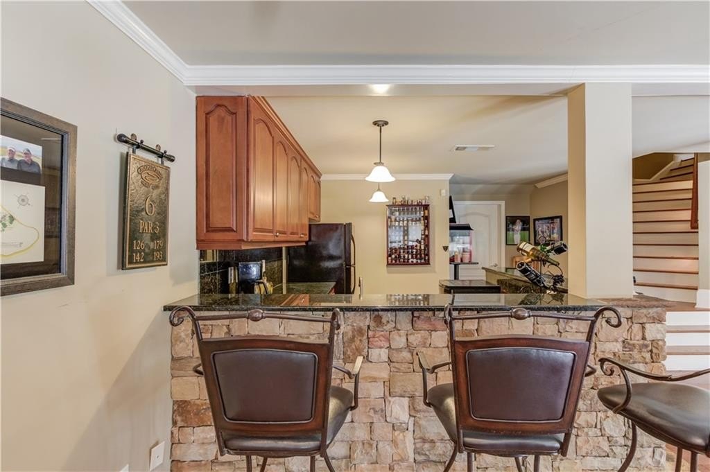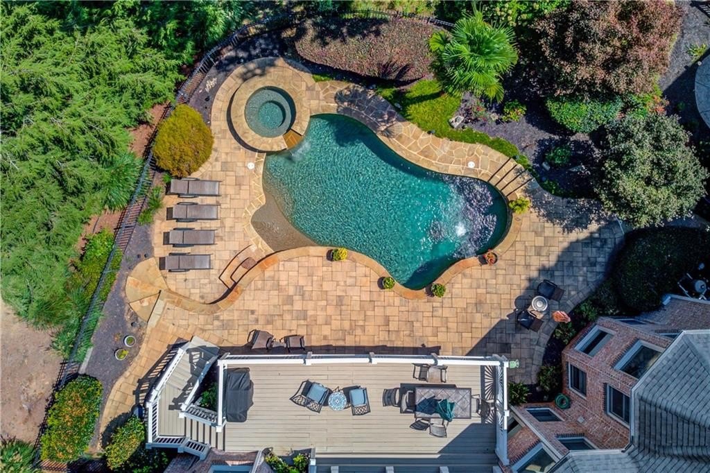 Welcome to a truly remarkable residence in the heart of the desired Crooked Creek neighborhood, a gated community known for its unmatched amenities and access to nationally acclaimed schools. Perfectly situated on a private, golf course lot, this stunning 4 sided brick home offers a seamless blend of luxury, privacy, and lifestyle. This home sits on the 15th fairway and boasts both one of the larger lots as well as floor plans in all of Crooked Creek. Step inside to discover an elegant and functional master on main floor plan anchored by an incredible, renovated kitchen. As you walk throughout the primary floor do not miss the craftsman molding and trim or the formal dining space accompanied by a great room that serves as a full wet bar. Incase you were running out of space to host or relax before you go upstairs, grab your cup of coffee from the coffee bar and be sure to stop by the primary level back porch which was recently repainted and stained. As you relax out here, enjoy the serenity the wooded landscape and golf course combination have to offer. Jaw not dropped yet? Walk upstairs where you have 4 bedrooms that each have their own full bathrooms so no need for arguing about who made the mess and who has to clean it... It was you! Because you don't have to worry about sharing a bathroom with anyone else. Drumroll please..... Now go downstairs where you will see the basement is a dream come true. Designed for entertaining, it includes a full bar area, lounging/media space, additional bedroom and bath, and of course direct access to the patio and pool—creating the ultimate space for hosting or relaxing in style. The fence line is actually not even where the fun ends, the property line runs beyond the fence so if that golf bug gets you and you want to put in your own putting green, you've got the space... do it! This home has only ever had one owner, for one reason.... It is everything you could need in a home, so make it yours today. Don't forget about the amenities such as: golf, tennis, swim, a water park-style pool, playground, clubhouse, and year-round community events. All just minutes from Milton, Alpharetta, and GA-400, and located in the most sought-after school districts in the state.