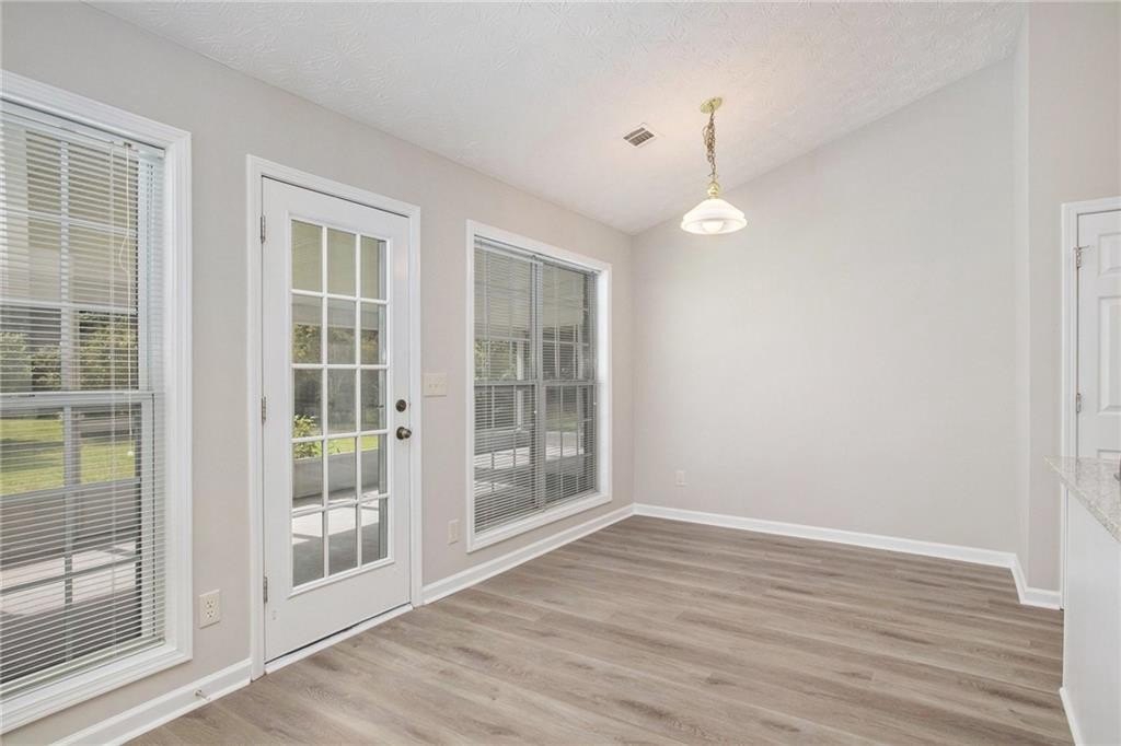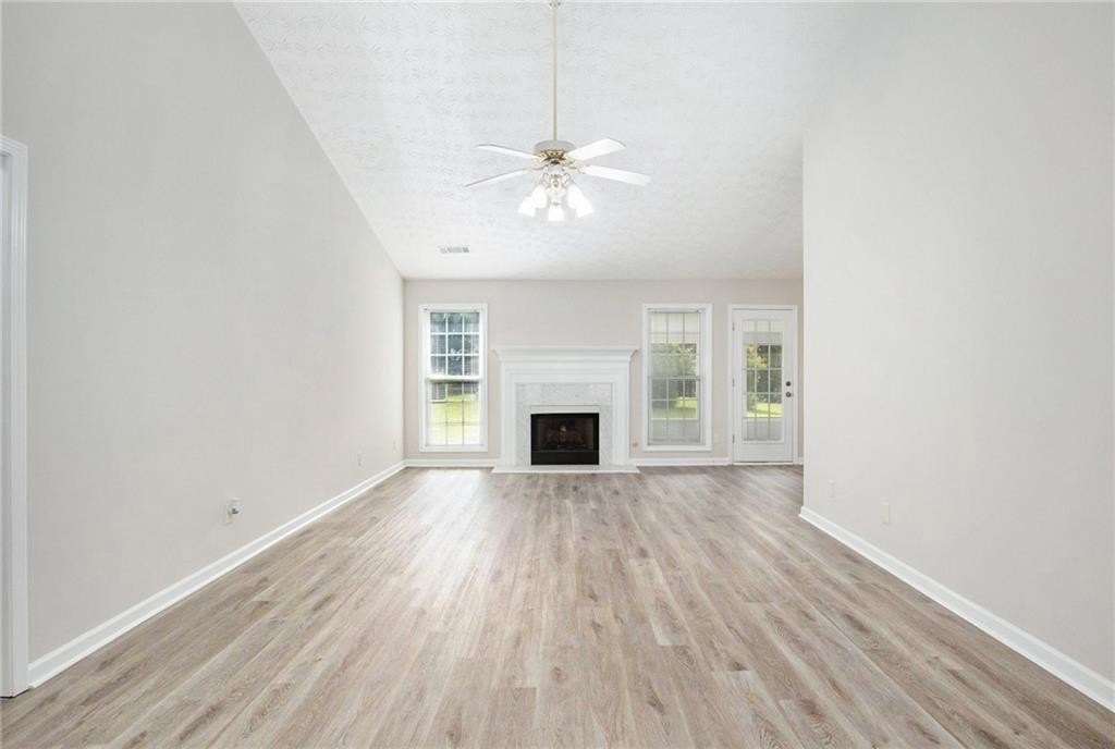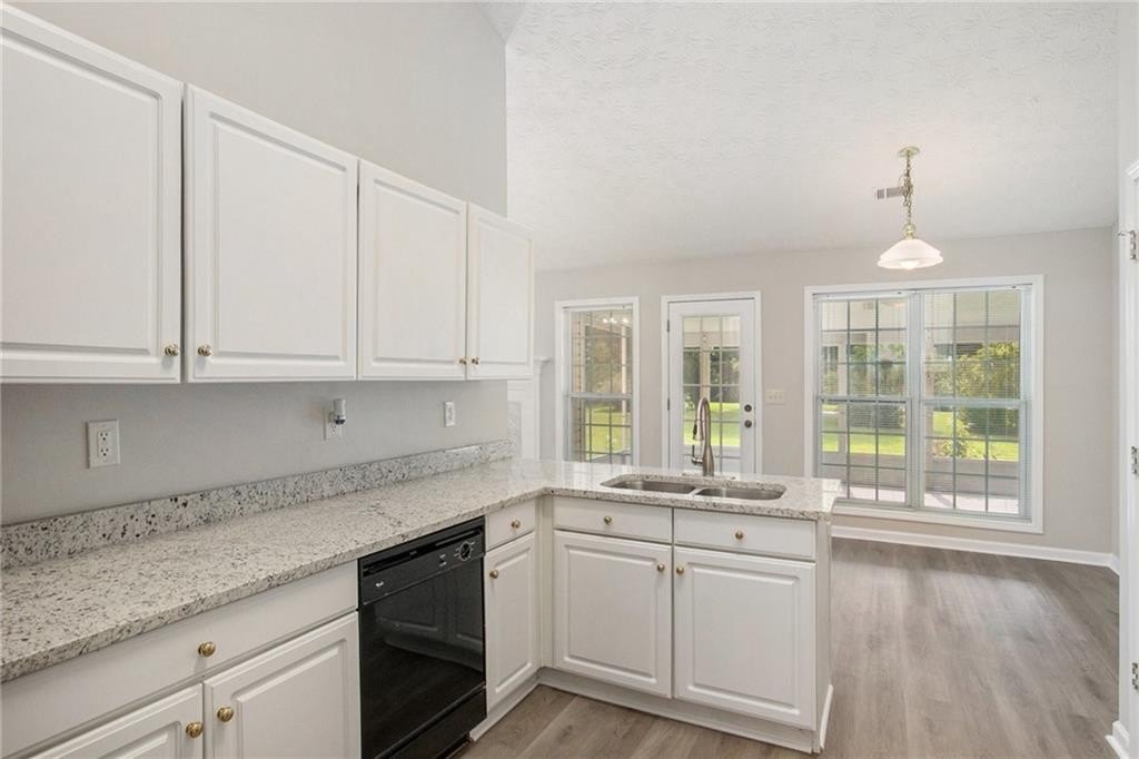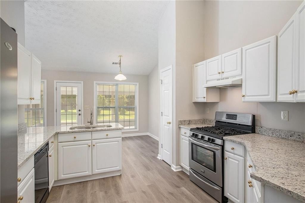 Inside, you’ll find a freshly painted interior with vaulted ceilings, new flooring, new counters, and a cozy gas-log fireplace that make the home just as inviting as the outdoors. The kitchen features granite countertops, white cabinetry, and all appliances included—refrigerator, stove, microwave, and dishwasher. A large pantry and formal dining room add both function and elegance.