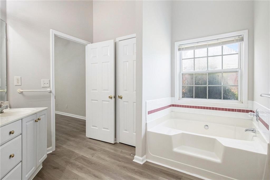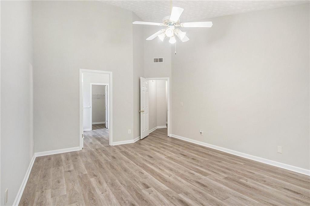 In addition to three bedrooms, a versatile fourth room provides flexible space for an office, media room, or guest bedroom. The owner’s suite boasts a spa-like bath with dual vanities, a soaking tub, separate shower, and a spacious walk-in closet.