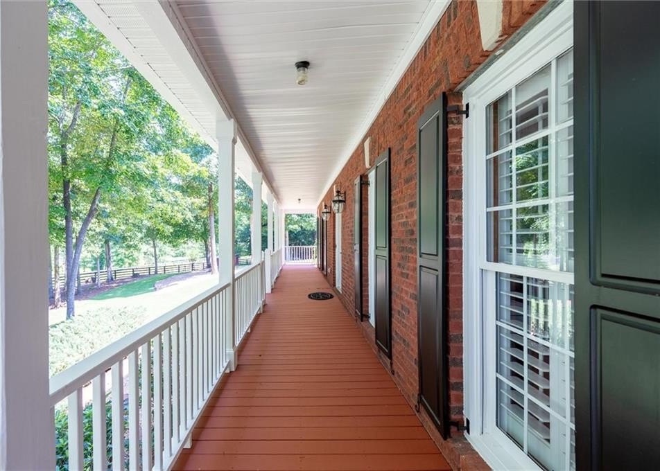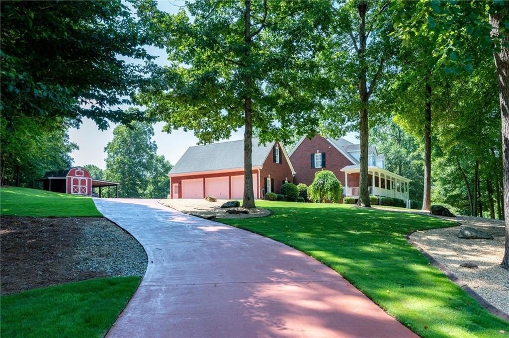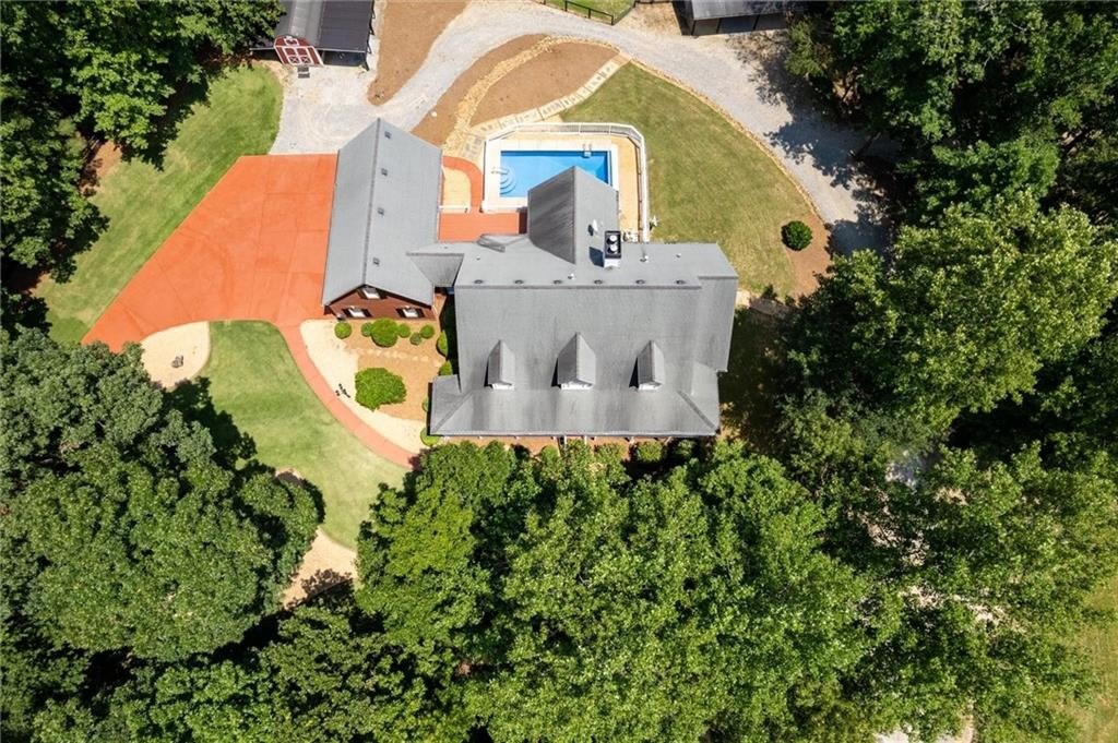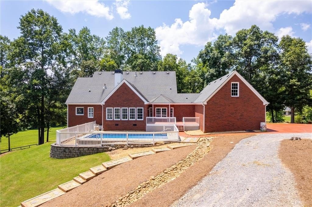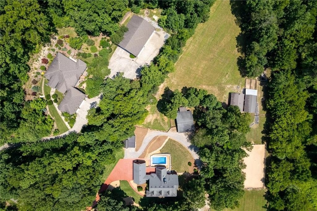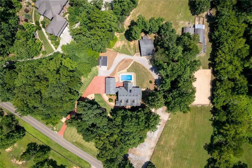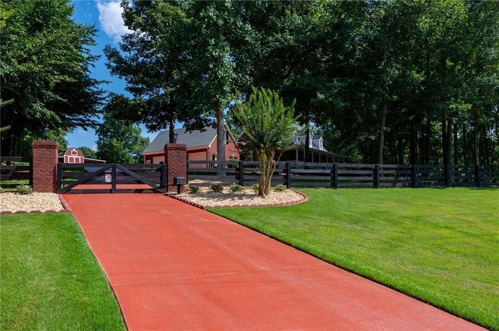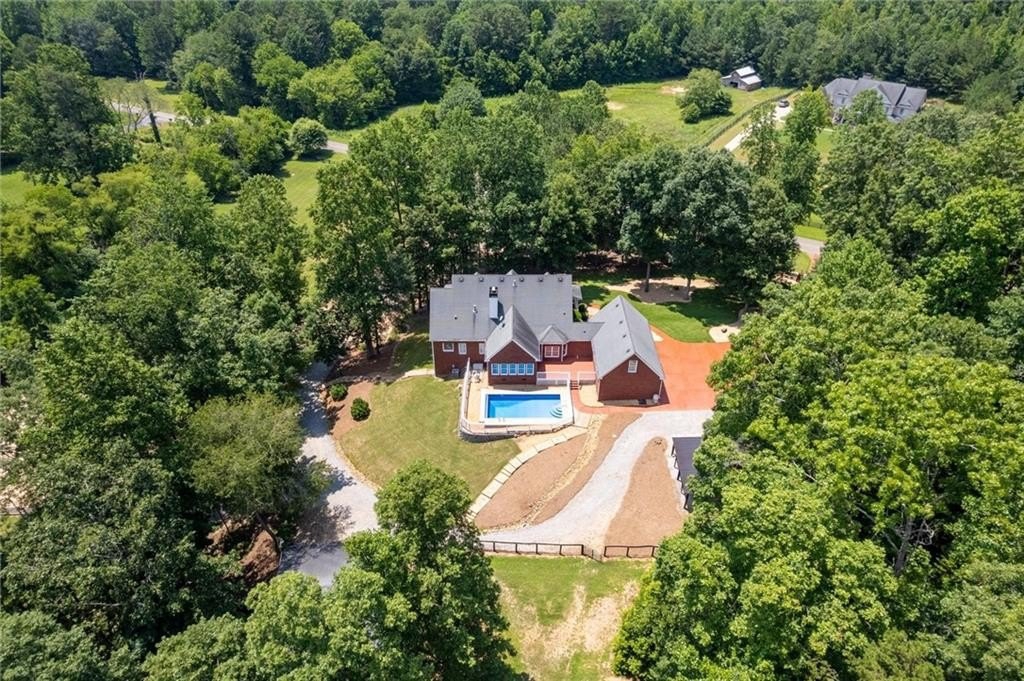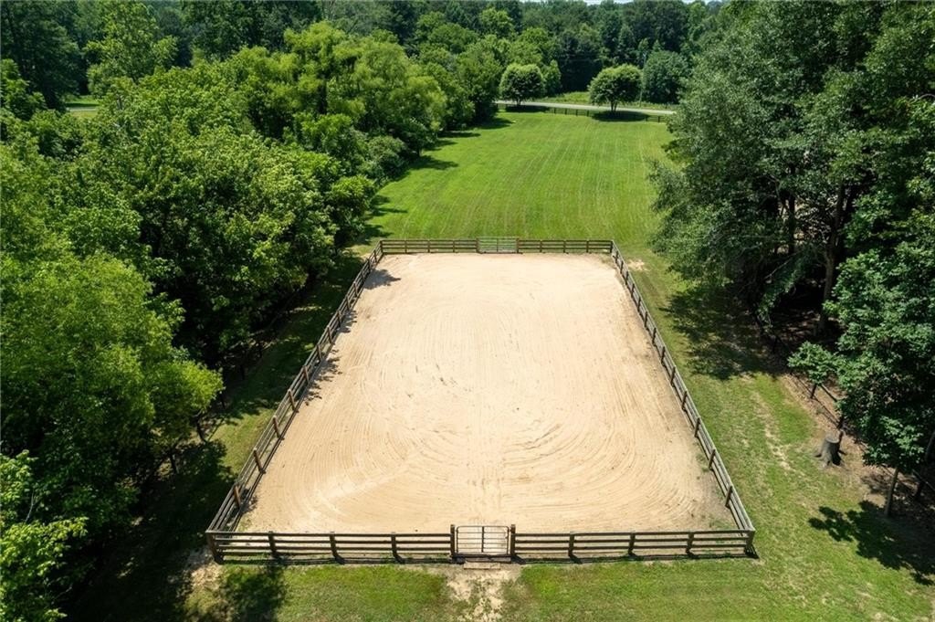 Stunning, well-maintained estate offering privacy and amenities on 5.7 acres. This custom brick home features upgraded craftsmanship, crown molding throughout, and high-quality finishes. Main level includes wood floors, built-in bookcases, sunroom, and a spacious owner’s suite with custom walk-in closet and built-ins. Updated lighting and fresh interior paint throughout. Secondary bedrooms feature built-in benches and hardwood hallway floors upstairs. Finished terrace level includes a theater room with sound system and walk-in closet, wet bar area, propane fireplace, new carpet, whole-house generator, and pool table (included). Outdoor features include a newly updated in-ground vinyl pool with new liner, pump, and filter. The estate includes a large workshop, 6-stall stable with washroom, riding arena, RV parking pad, and a year-round stream. This home is conveniently located within a 5-minute drive to Publix, and restaurants. It's a Must see! There have been too many updates to mention them all but most notable are - HVAC (apx 2 years), water heater (apx 3 years), driveway resurfaced. Property is gated, wired for surround sound, and offers easy access to local riding trails. Land and stable equipment are open for negotiation.