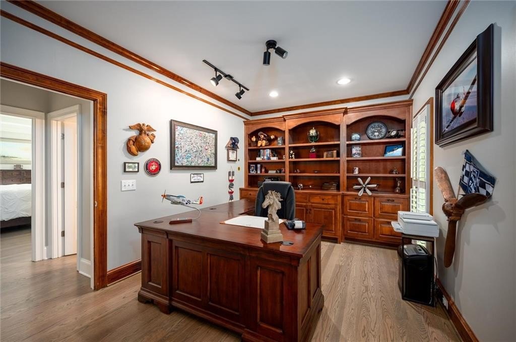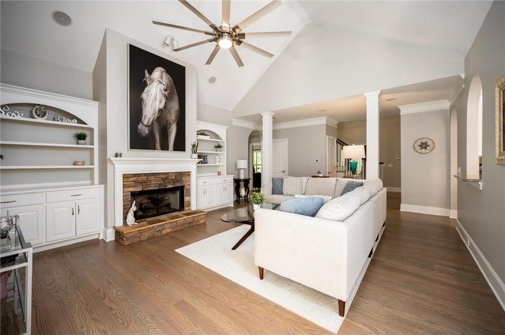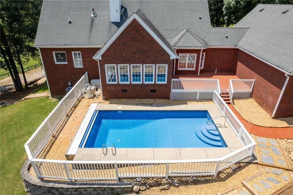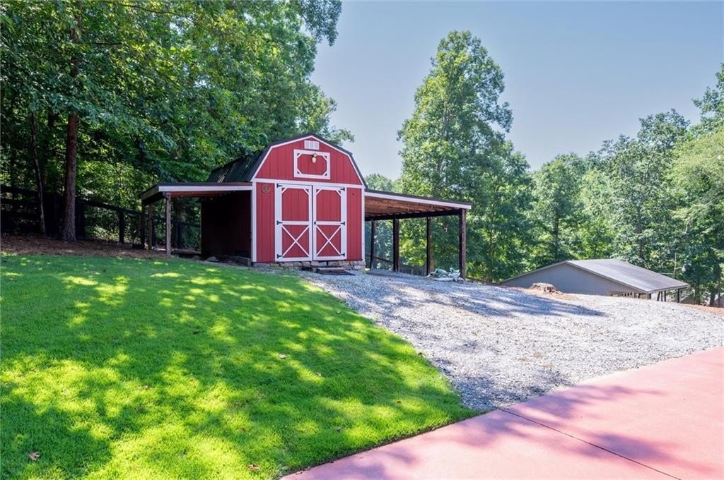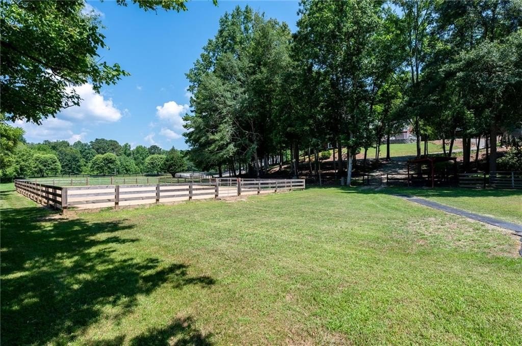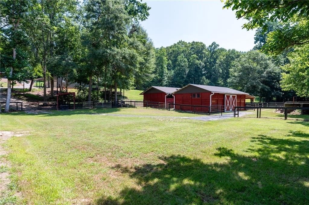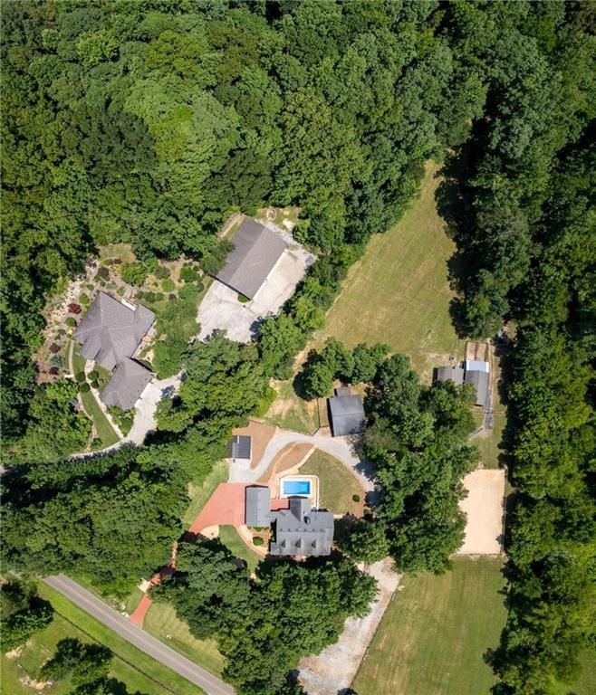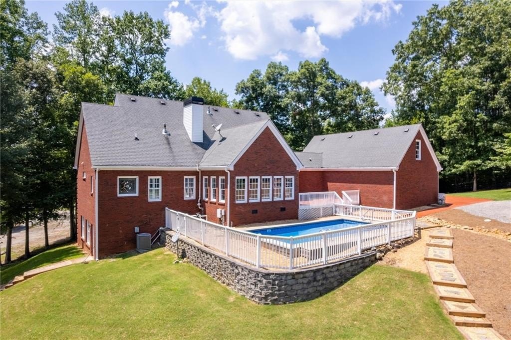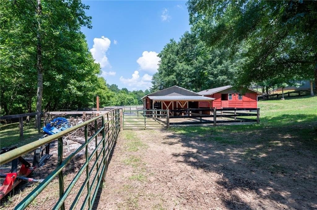 Stunning, well-maintained estate offering privacy and amenities on 5.7 acres. This custom brick home features upgraded craftsmanship, crown molding throughout, and high-quality finishes. Main level includes wood floors, built-in bookcases, sunroom, and a spacious owner’s suite with custom walk-in closet and built-ins. Updated lighting and fresh interior paint throughout. Secondary bedrooms feature built-in benches and hardwood hallway floors upstairs. Finished terrace level includes a theater room with sound system and walk-in closet, wet bar area, propane fireplace, new carpet, whole-house generator, and pool table (included). Outdoor features include a newly updated in-ground vinyl pool with new liner, pump, and filter. The estate includes a large workshop, 6-stall stable with washroom, riding arena, RV parking pad, and a year-round stream. This home is conveniently located within a 5-minute drive to Publix, and restaurants. It's a Must see! There have been too many updates to mention them all but most notable are - HVAC (apx 2 years), water heater (apx 3 years), driveway resurfaced. Property is gated, wired for surround sound, and offers easy access to local riding trails. Land and stable equipment are open for negotiation.