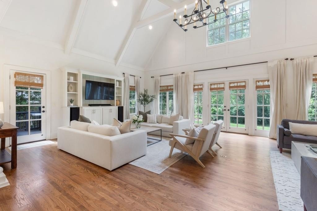 Welcome to a rare gem in the heart of Buckhead! A beautifully renovated Tudor style home set on an exceptionally private, flat 1 acre lot, perfectly positioned across from a serene nature preserve. This elegant 5-bedroom, 4.5-bathroom home offers the best of sophisticated living filled with charm, character, warmth and modern touches. Step inside to discover a magazine worthy home, with an effortless flow that's perfect for both everyday living and entertaining. The main floor offers a dedicated office space, large dining room and a show stopping great room with soaring vaulted, beamed ceilings. The gourmet kitchen has been recently renovated and features beautiful quartz countertops and top-of-the-line appliances. The kitchen opens to a cozy keeping room with a double-sided fireplace shared with the dining room, creating the perfect setting for gathering and conversation. Ideal for guests, the main floor also offers a bedroom and ensuite bathroom. Upstairs, the home's thoughtful layout includes a loft space, spa-inspired, vaulted primary suite with fireplace, three additional bedrooms, two additional bathrooms and a laundry room with sink and incredible storage. The flat backyard offers the ultimate blank canvas, ready for your dream pool or outdoor oasis. This home truly is a can't miss! A rare combination of privacy, location, and timeless design just minutes from the best of Buckhead!