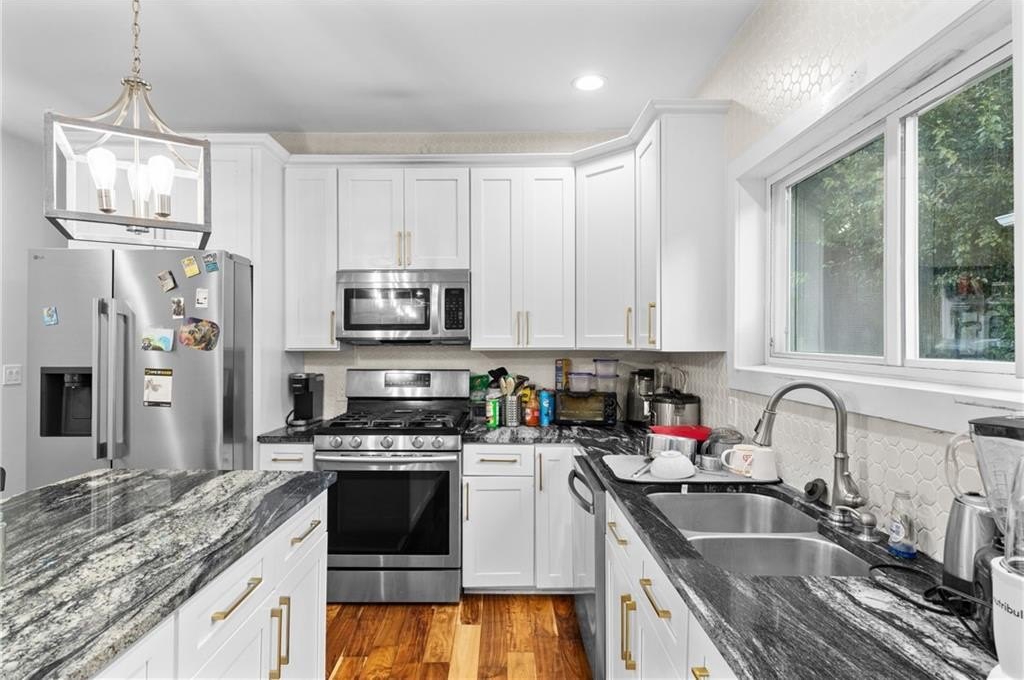 You’ll love the gleaming hardwood floors throughout, brand-new windows that fill the home with natural light, and the peace of mind that comes with a new roof plus fully updated plumbing, electrical, and HVAC systems. Recessed lighting and ceiling fans bring a warm, inviting glow, while the landscaped yard, SimpliSafe alarm, and Ring doorbell add convenience and security.