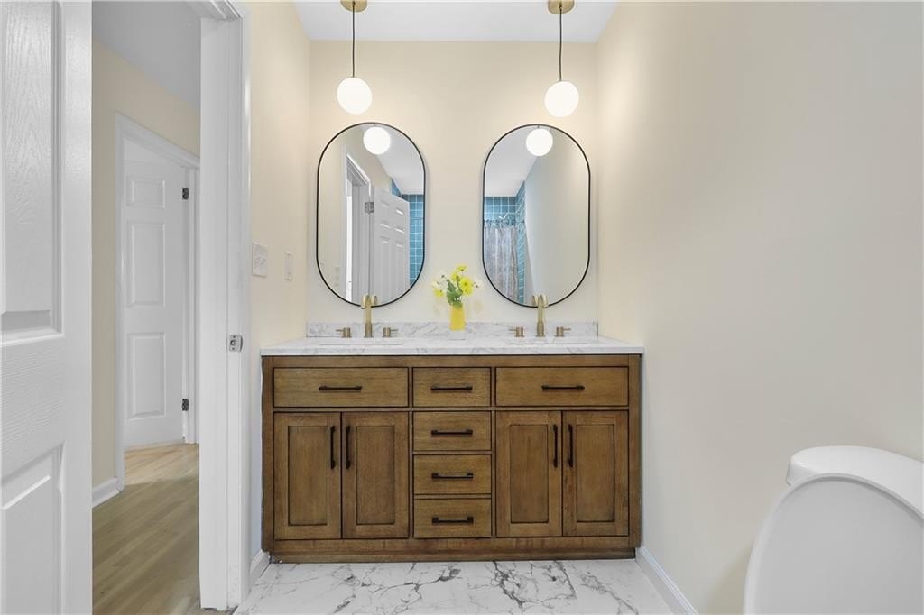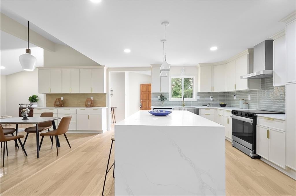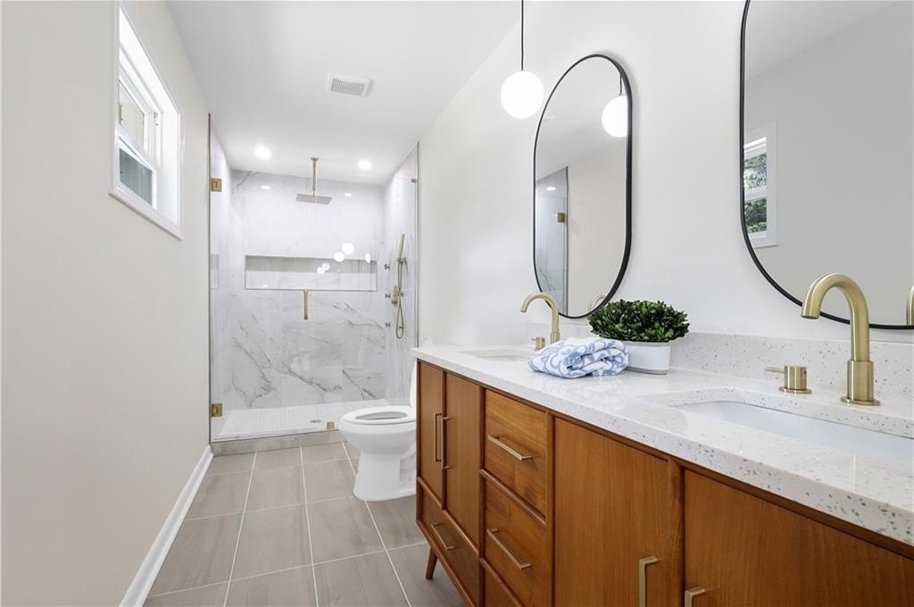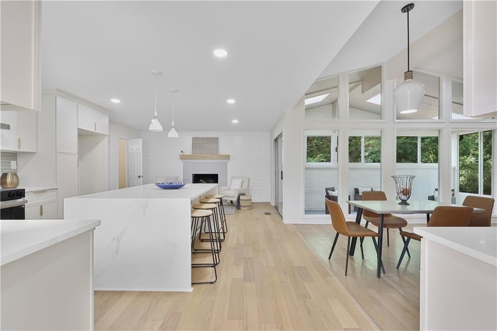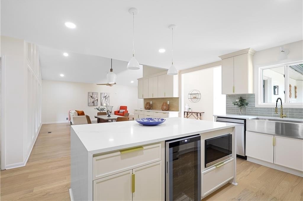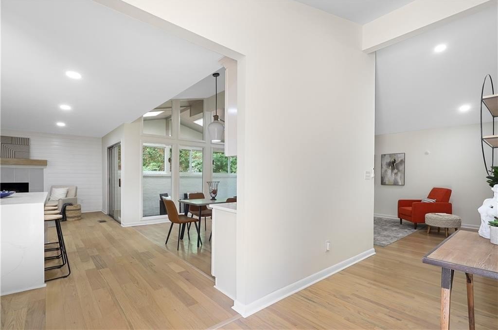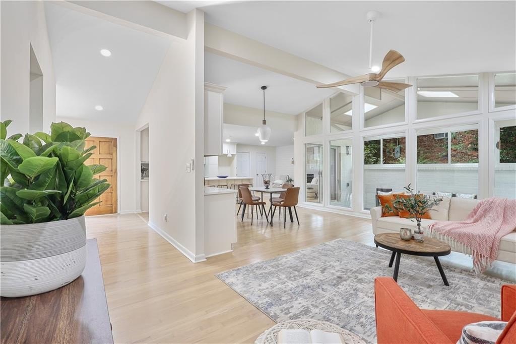 Step into timeless elegance with this newly refurbished midcentury modern masterpiece, nestled on a generous .35-acre lot. This home seamlessly blends classic charm with modern sophistication, offering a lifestyle of comfort, light, and luxury. Inside, natural light floods the sunroom, where enormous windows frame serene views of the lush yard, creating the perfect space for morning coffee or evening relaxation. The living room is a true showstopper, featuring skylights that bathe the space in sunlight and enhance the airy, open feel. The expansive, state-of-the-art kitchen is a chef’s dream—boasting sleek, high-end finishes, abundant counter space, and room to entertain with ease. You'll be captivated by the original hardwood floors that flow throughout the main living spaces, preserving the home's authentic character. Downstairs lies a fully finished basement with two additional bedrooms, a full bath, and not just one but TWO bonus rooms offering endless possibilities—home office, gym, media room, or guest suites. Outside, the spacious backyard is a host’s paradise—perfect for summer barbecues, evening gatherings, or simply enjoying the outdoors in style. With its thoughtful updates, spacious layout, and architectural charm, this home is a rare find. Don’t miss your chance to own a piece of midcentury magic—modernized for today’s lifestyle.
