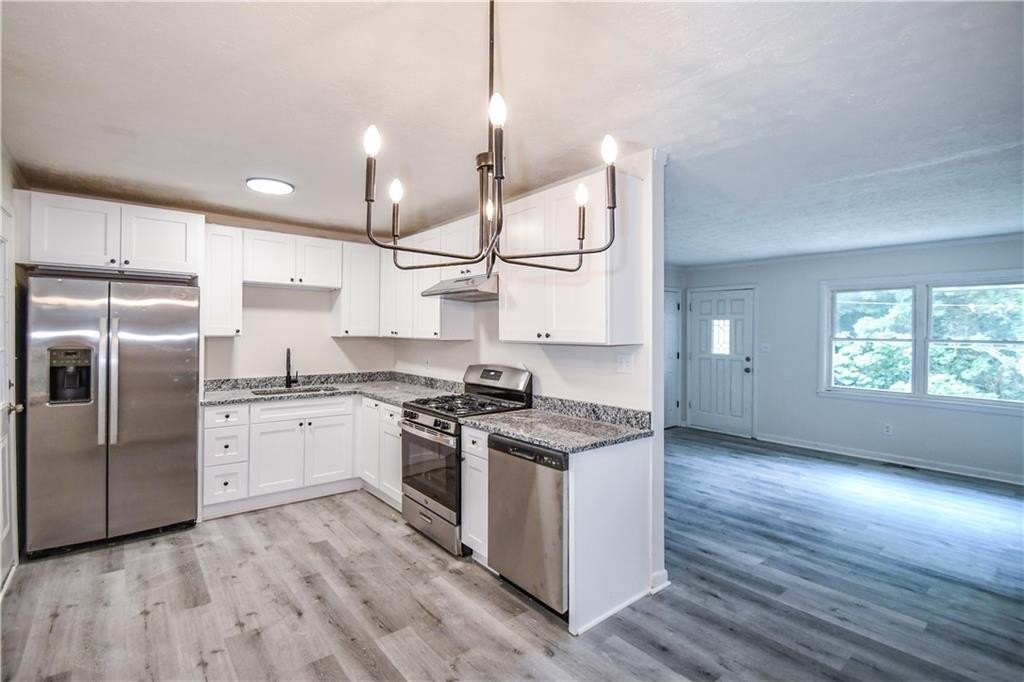 This beautifully refreshed 4-bedroom, 1.5-bath home offering true one-level living. Step inside to find an inviting interior featuring fresh paint throughout, new vinyl plank flooring in the common areas, plush new carpet in the bedrooms, and stylish new light fixtures. The updated kitchen shines with granite countertops, crisp white cabinets, and brand-new stainless steel appliances. Enjoy your morning coffee or unwind in the evening in the bright sunroom overlooking the large, level, fenced backyard—perfect for gardening, outdoor relaxation, or weekend barbecues. With its modern updates and functional layout, this home is an ideal choice for first-time buyers or anyone seeking comfortable one-level living. Ask about the Georgia Dream Down Payment Assistance Program—this could be your opportunity to own a home with added savings!