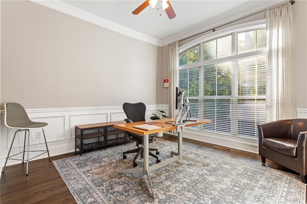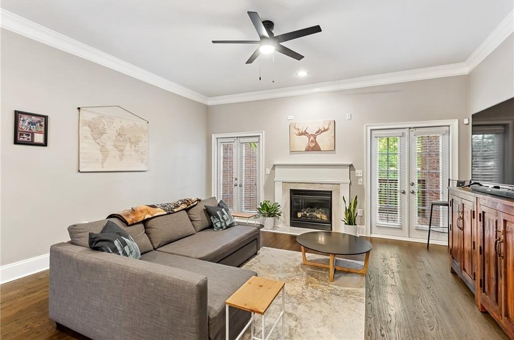 This beautifully updated townhome is located in the highly sought-after Mosaic at Vinings community and offers 3 bedrooms, 3.5 bathrooms, and a versatile floor plan designed for modern living. Step inside to find a bright, open main level featuring a spacious living area and separate dining room, perfect for entertaining or relaxing. The kitchen shines with white cabinetry, updated light fixtures, and gorgeous refinished hardwood floors, all set against freshly repainted, neutral-toned interiors that create a warm and inviting feel. The lower level includes a private office or bedroom with newer luxury vinyl flooring, a full bath, and a mounted TV that stays with the home—making it an ideal guest suite or work-from-home space. Upstairs, generously sized bedrooms provide comfort and privacy, while the primary suite offers a true retreat. Additional highlights include: One of two HVAC units has been replaced in the past five years as well as a double tandem garage with ample storage and workspace with shelving and workbench included with the home. Behind the gated entrance, residents enjoy a sparkling community pool, playground, and green spaces—perfect for relaxation and recreation. All this just minutes to Smyrna Market Village, Rev Coffee, Truist Park, The Battery, and major highways for an easy commute. Don’t miss the chance to call 1560 Mosaic Way your new home!