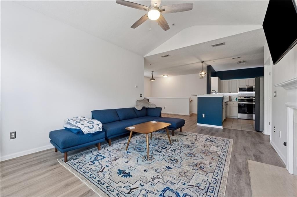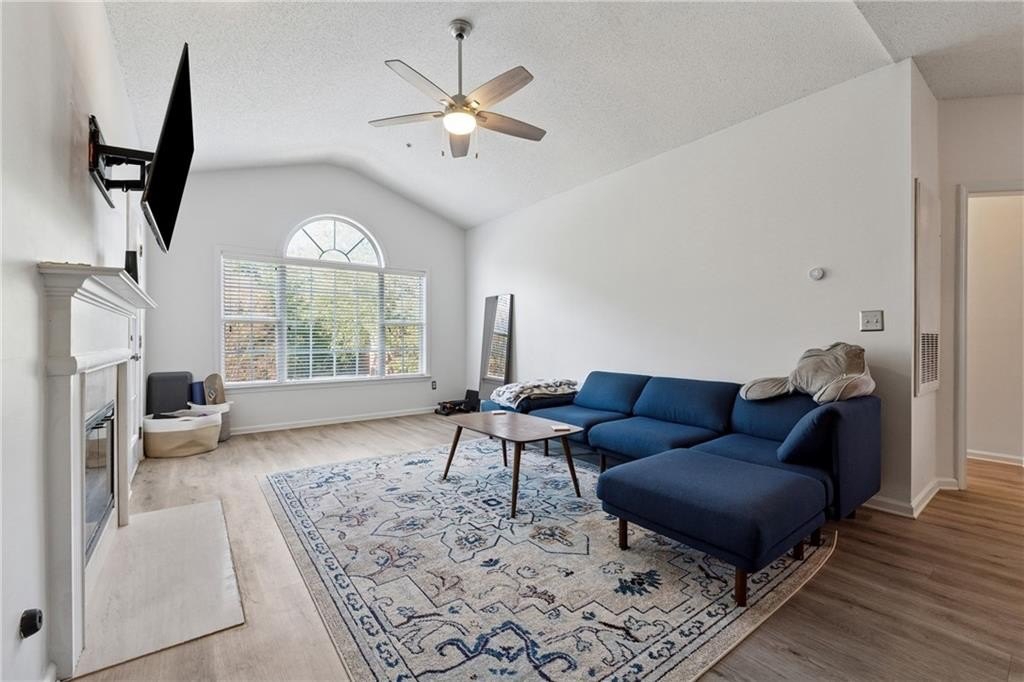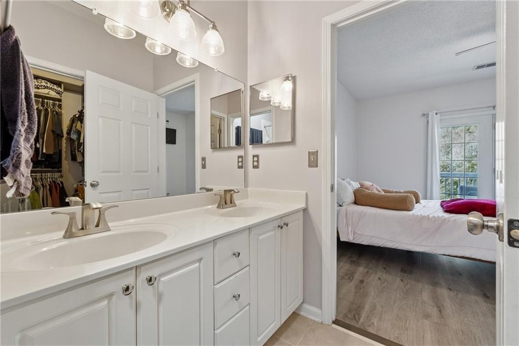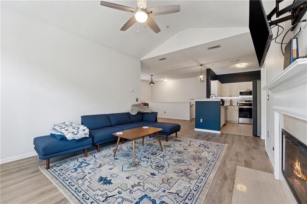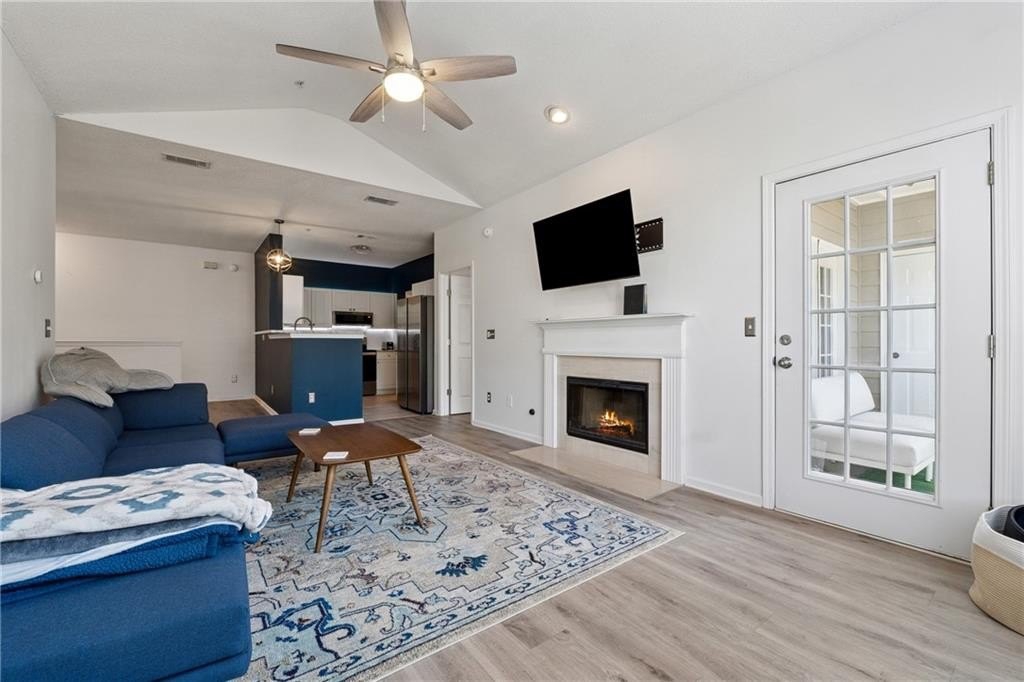 Welcome to your DREAM home nestled in the serene, gated Woodlands At Webb Bridge community. This beautifully updated condo sits in an unbeatable location, just steps from DOWNTOWN Alpharetta and AVALON. Enjoy upscale living at an affordable price in one of North Fulton’s most sought-after neighborhoods! Thoughtful split-bedroom floor plan ensures privacy, with a PRIMARY suite featuring custom walk-in closets and romantic French doors opening to a private balcony. Newly installed hardwood-like floors, quartzite countertops, stylish backsplash, and stainless steel appliances create a sophisticated and inviting atmosphere. A NEWER HVAC unit and roof add peace of mind. The fireside family room flows seamlessly into an open-concept dining area and a sleek white kitchen with a breakfast bar, perfect for entertaining guests or COZY nights in. Savor morning coffee on the covered front porch or unwind on the PRIVATE balcony with tranquil wooded views. Additional storage off the patio keeps things organized.