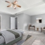 Upstairs, the owner’s suite is a private sanctuary with a tray ceiling, spacious sitting area, and a spa-like en suite bath complete with dual vanities, a soaking tub, and a glass-enclosed shower. Three additional bedrooms provide flexibility for family, guests, or work-from-home needs.