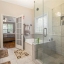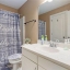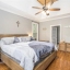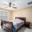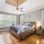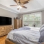 The private owner’s suite is located on its own wing of the home and boasts cathedral-beamed ceilings with wood accents, a spa-like renovated ensuite with double vanities, tile flooring, a soaking tub, a tiled shower, and a generous walk-in closet. Two additional bedrooms on the main level share a convenient Jack-and-Jill bathroom.
