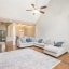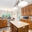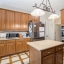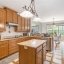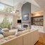 The large living room features built-in shelving and cabinetry framing a stacked stone fireplace, creating the perfect spot for gatherings. The open-concept kitchen offers stained cabinetry, double ovens, an electric cooktop, and a large island. An adjoining breakfast area overlooks an additional den, providing even more living space on the main level.